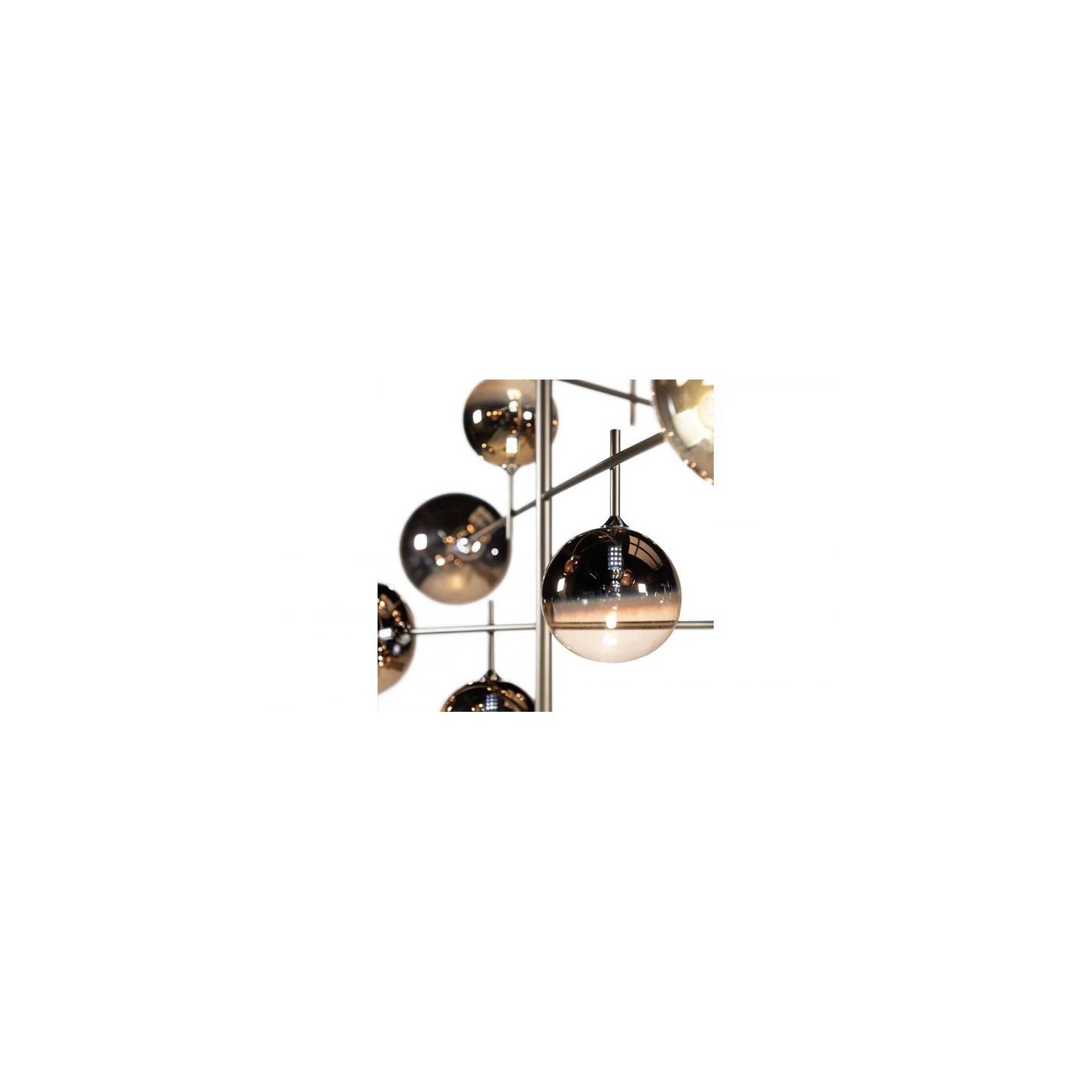 Suspension lamp with meat structure and sati bronze finish. Transparent glass spheres with sputtering finishes, nuanced in bronze, silver, gold and LED.