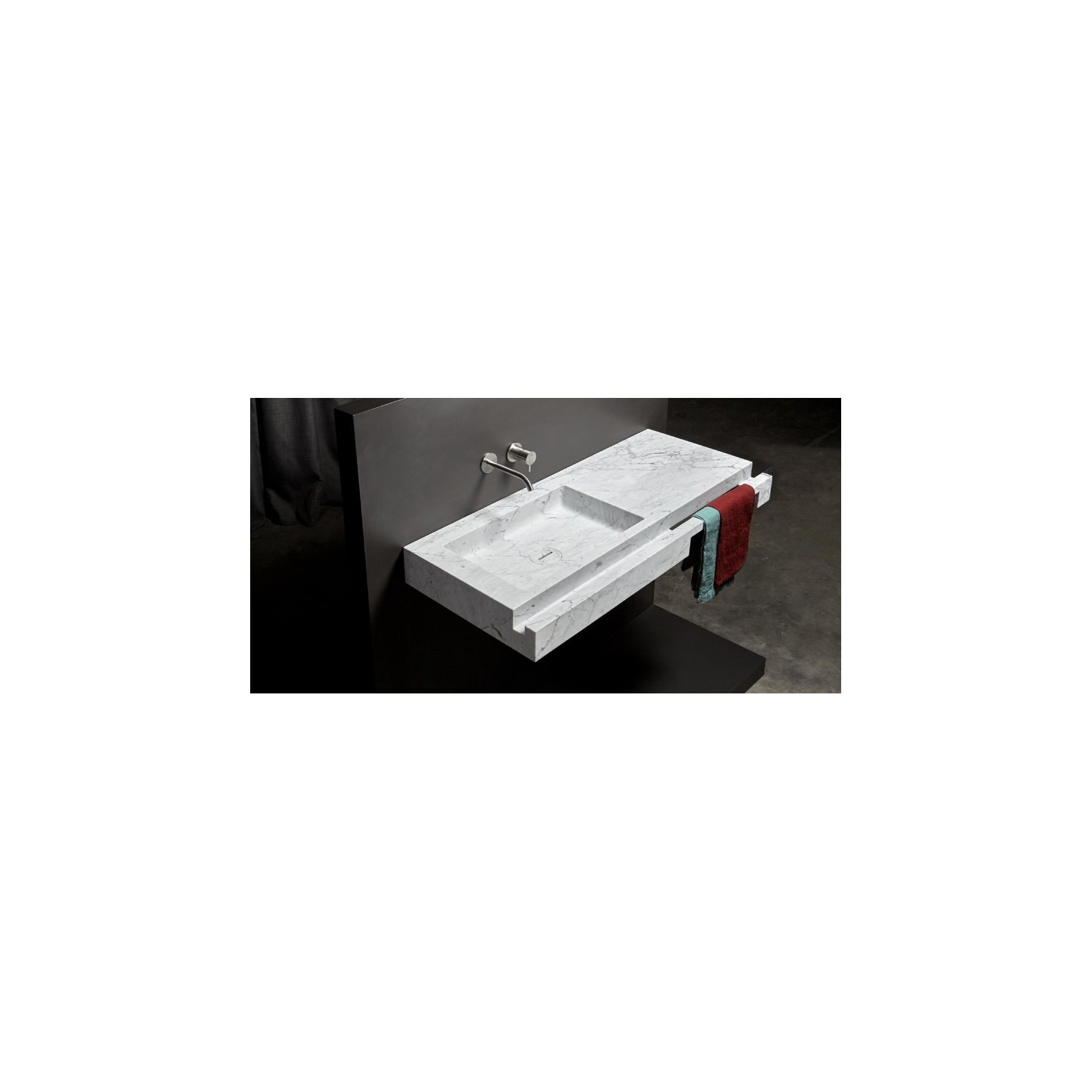 Clear and precise lines, perfect cuts that divide and shape the material to give life to pure geometries, sharp edges and rigorous volumes. An elegant final image that comes from a sophisticated proportional balance, from measured dimensions, from the relationship between solids and voids, and from the superposition of layers that settle on each other. The creativity of man, the unique value of the material and the advanced technology meet in the Cut washbasin, obtained from a single block of marble from which the automatic milling processes have extracted the essence.