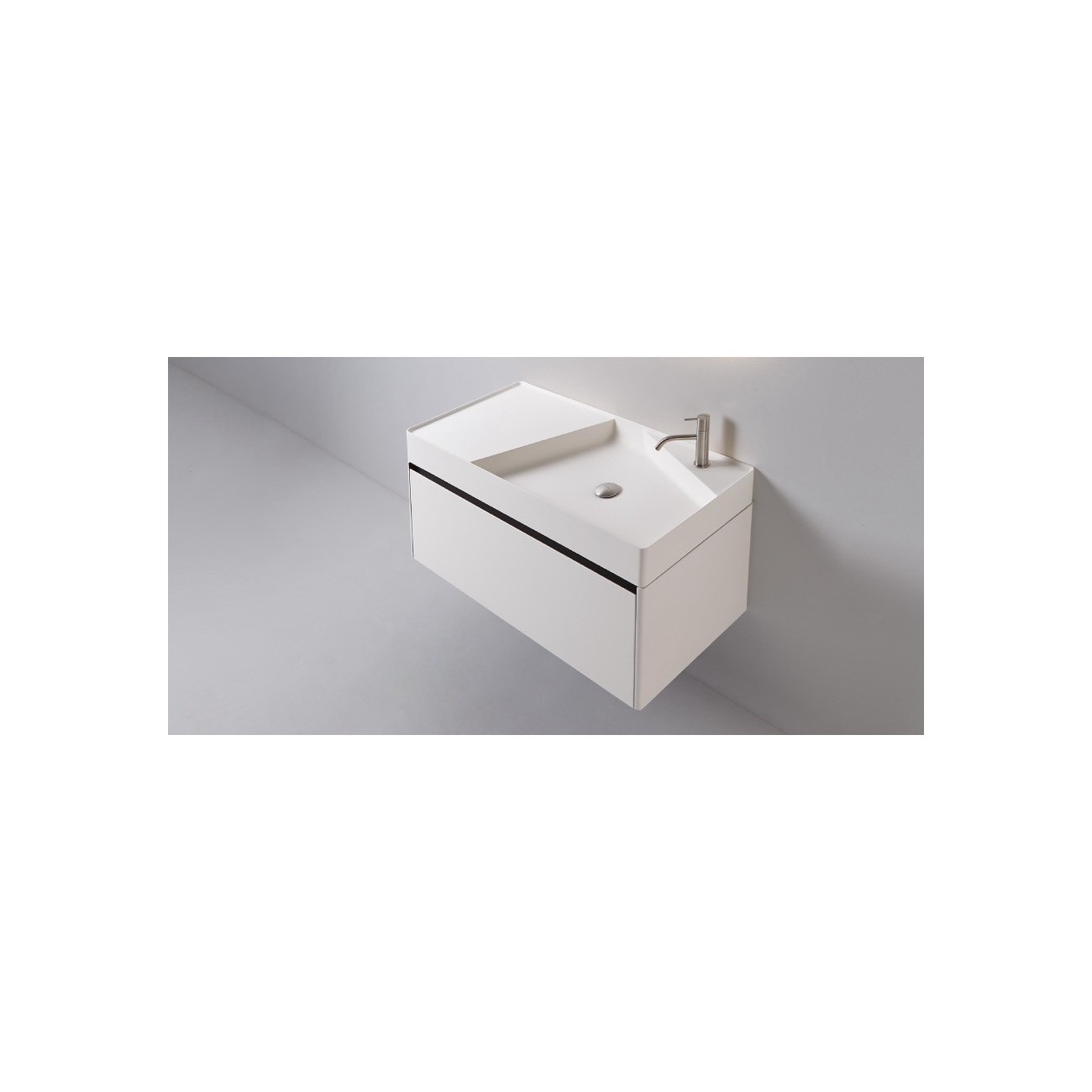 An element, the surface for accessories, that is always a friend of the basin. A functional presence, necessary due to its daily usage, generates a new form, an essence of the project itself. Simplo is a complete family of washbasins made of Flumood® in which part of the basin is occupied by a surface.