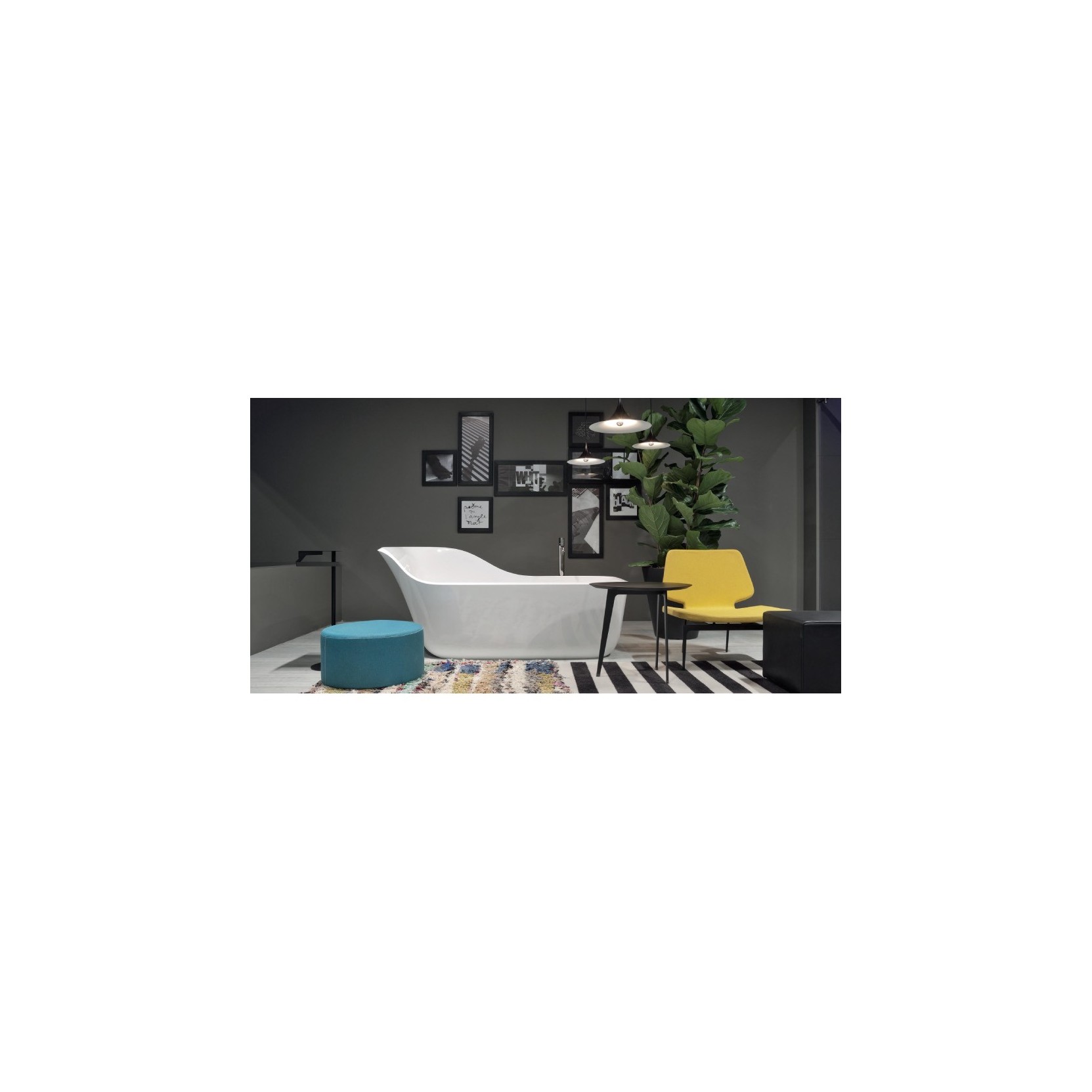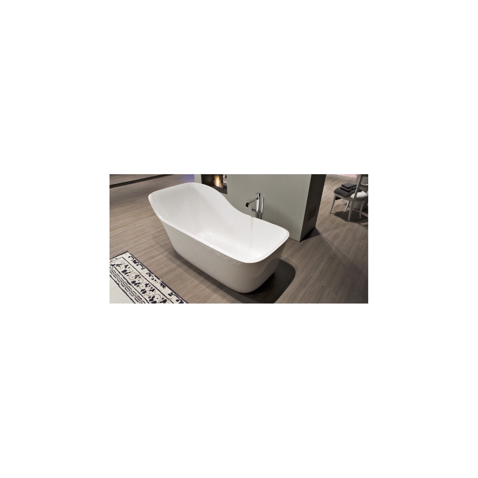 The edges rise symmetrically on one side to naturally lean back upon. The flowing lines accompany this growth favoring the gesture of the body immersed in the bath.