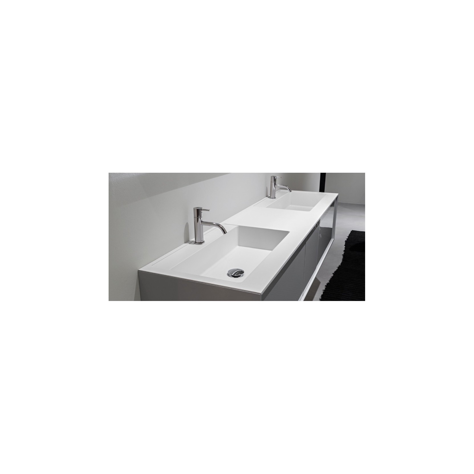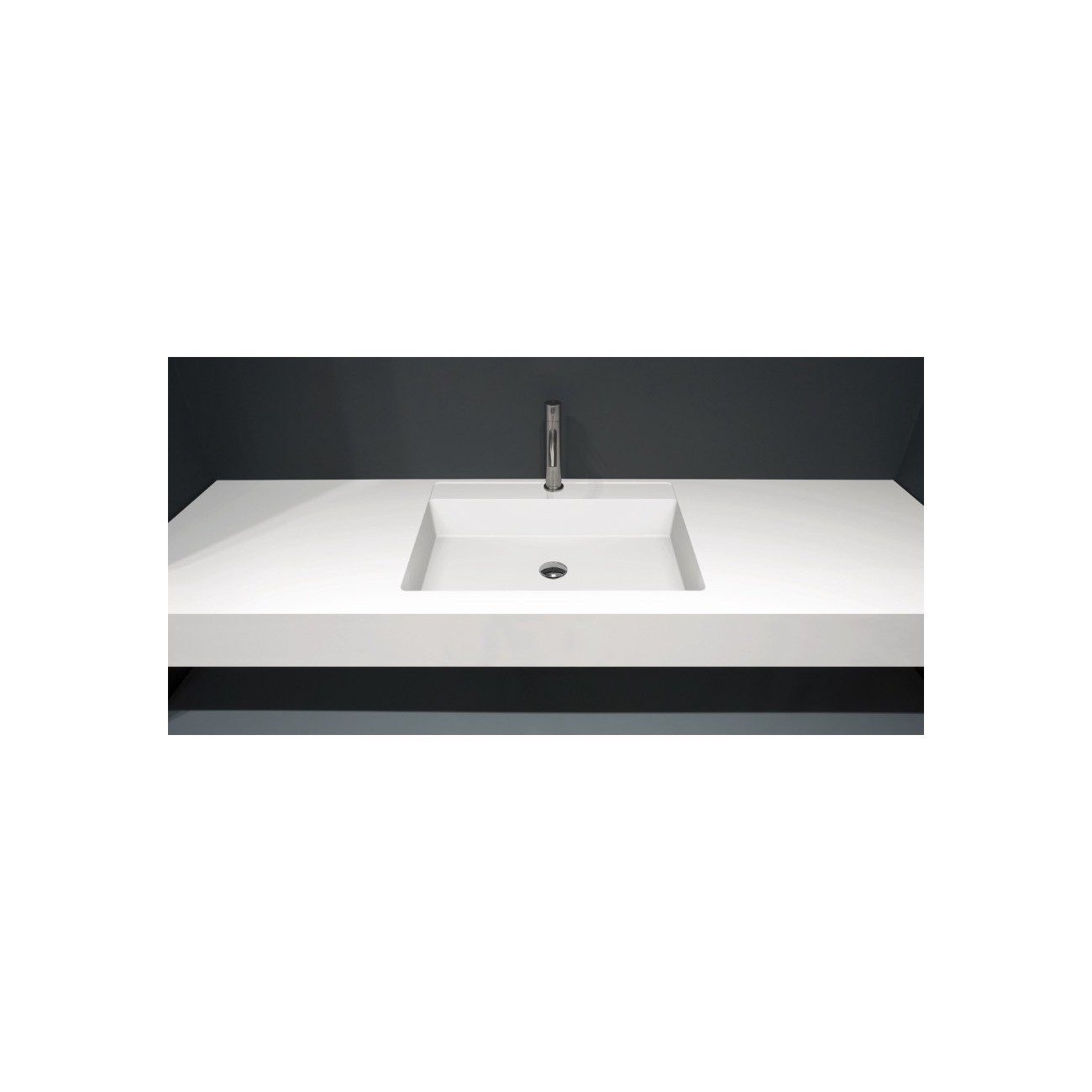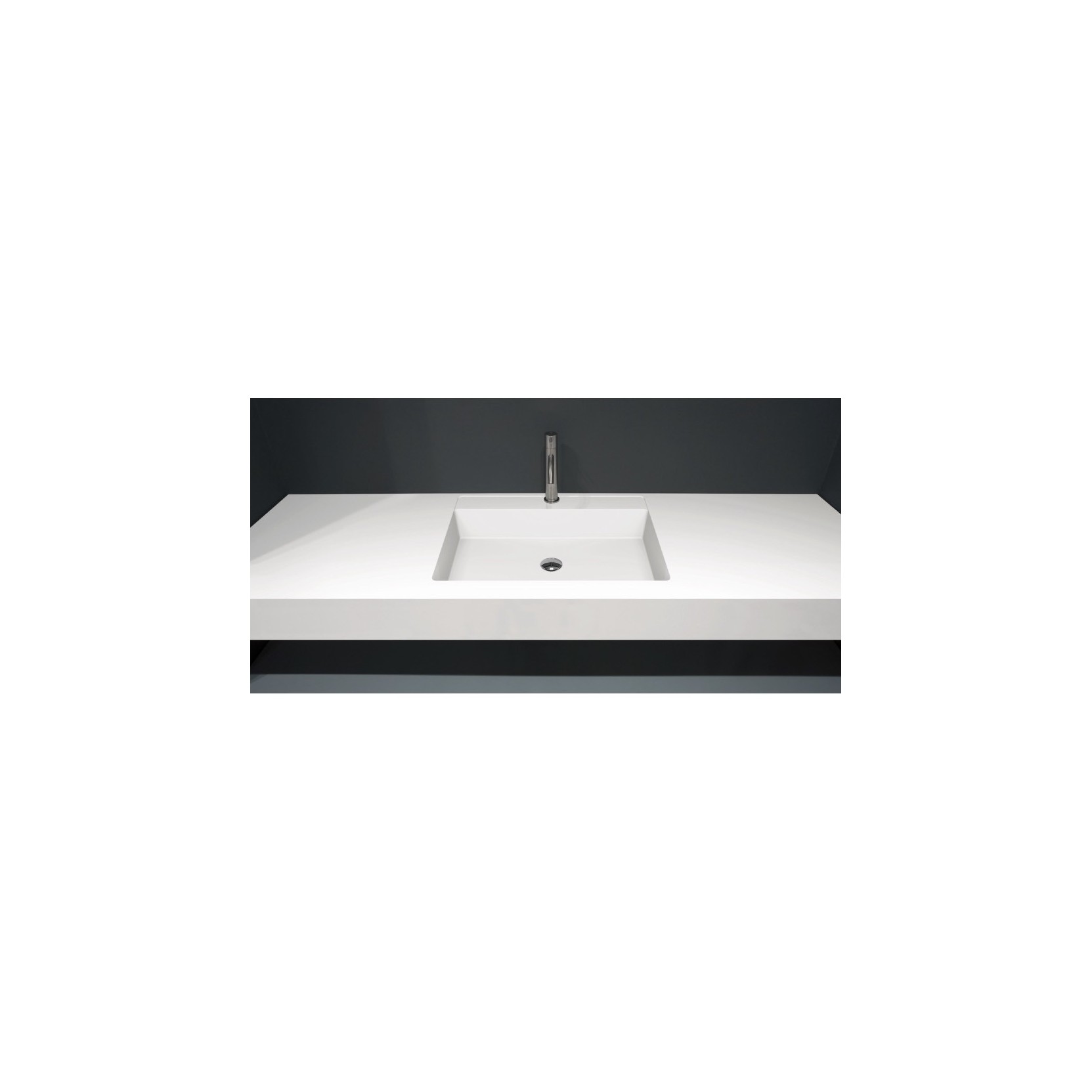 Basic, rectangular shape, the integrated basin is characterized by a perfect geometry and by a rear lowered edge that can accommodate the tap and / or serve as a support ledge for soap, dispenser or other accessories. Available in a Satin (smooth) finish proposes a basin with variable depth, 47 or 54 cm.
