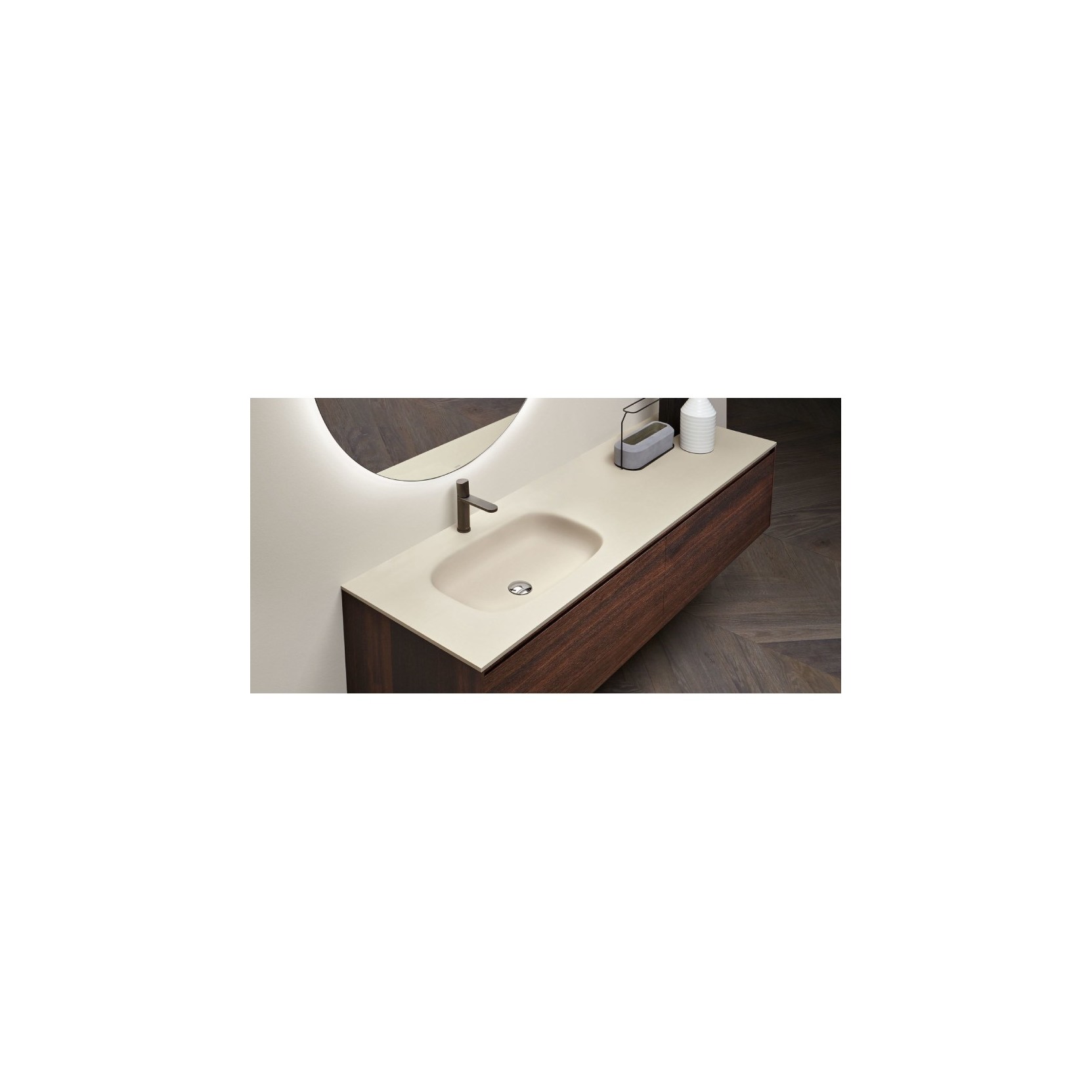 Nuvola is a basin of the standard sizes, with depth of 54 cm and however, has an soft oval shape that defines a contrast to the top.