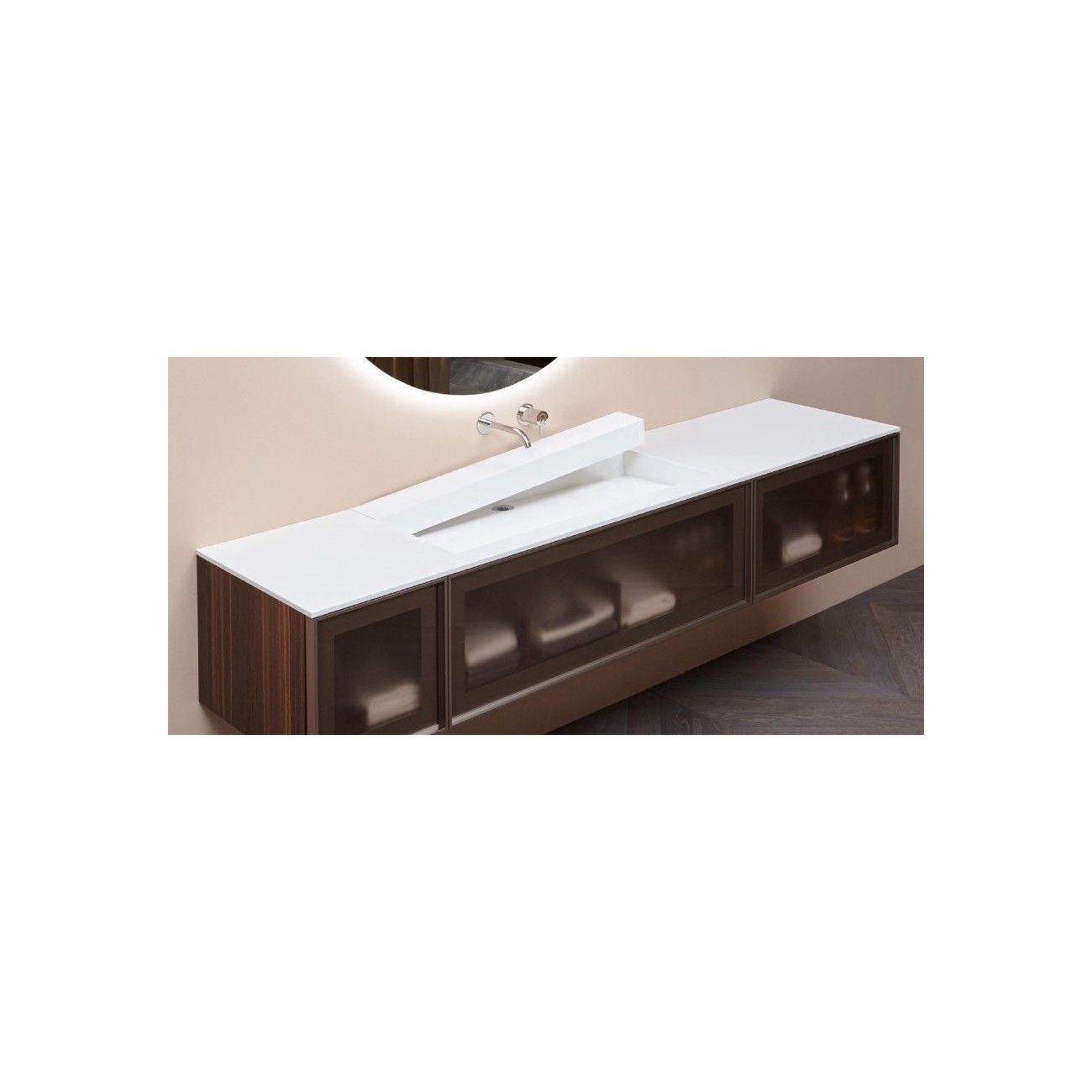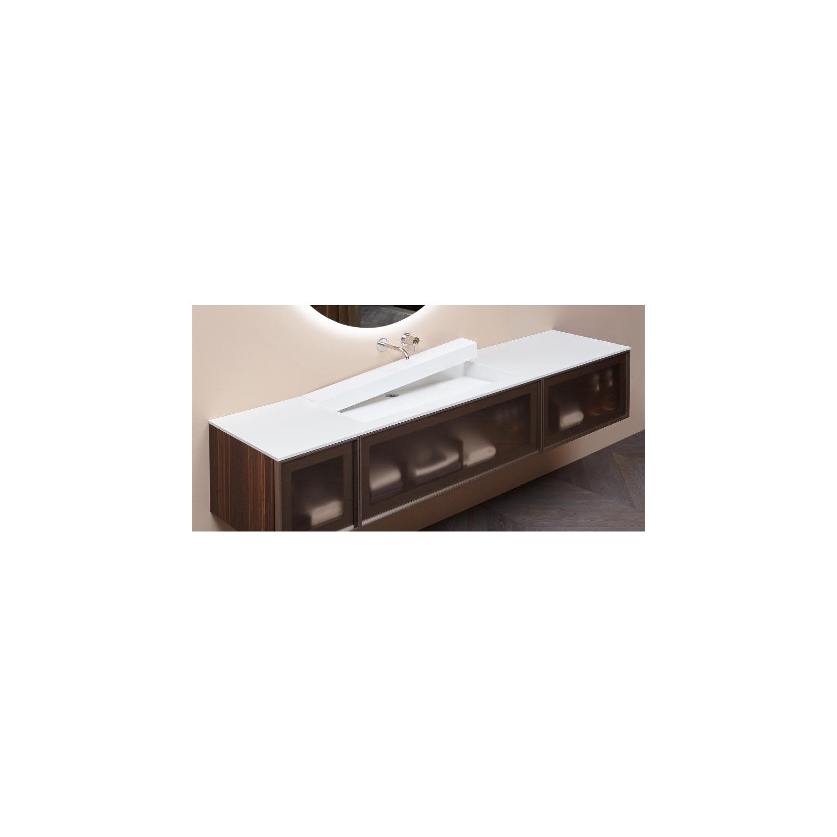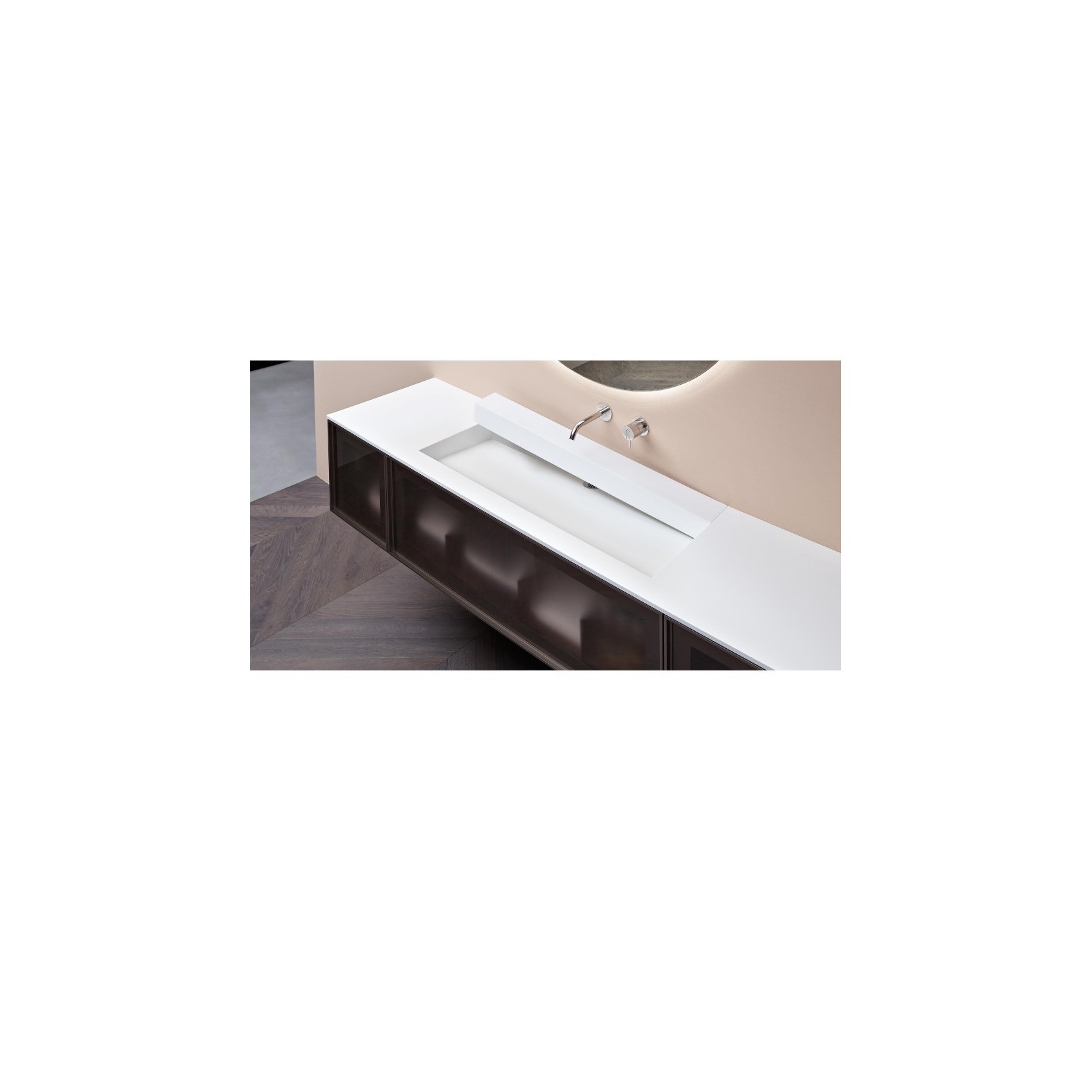 In 2017, Antoniolupi completes the trilogy of the Slot series, which in 2001 redefined the archetype of the wash basin by transforming the drain from a simple functional component into aesthetic detail and distinctive feature of the project. Already in 2008, My_Slot had expanded the versatility of the washbasin making it available with a traditional drain. In either case the use of Corian as the only material and the total absence of the drain and overflow, describes minimal aesthetics ever seen before. Sharp and essential shapes, clean and rigorous volumes, straight lines and proportional balance of the surfaces, which are in the DNA of the project, are found, after more than 15 years since the launch of what is now a real bestseller, even in the new version.