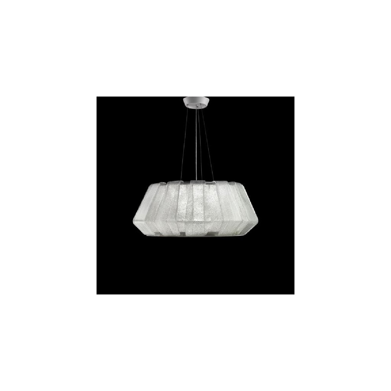 Wang is a collection of ceiling or suspension lamps designed and proposed by Barovier & Toso. Wang are lamps obtained through an technique from Murano that was invented and patented by Barovier&Toso, plus a series of elements with an extremely modern geometric design and a technological metal structure: all these make Wang the perfect synthesis of tradition and modernity. Wang is a collection made up of transparent glass elements that have been decorated using the white Rugiada® technique. The metal structure comes in white or painted in black bronze and contains dimmable LED light sources.
