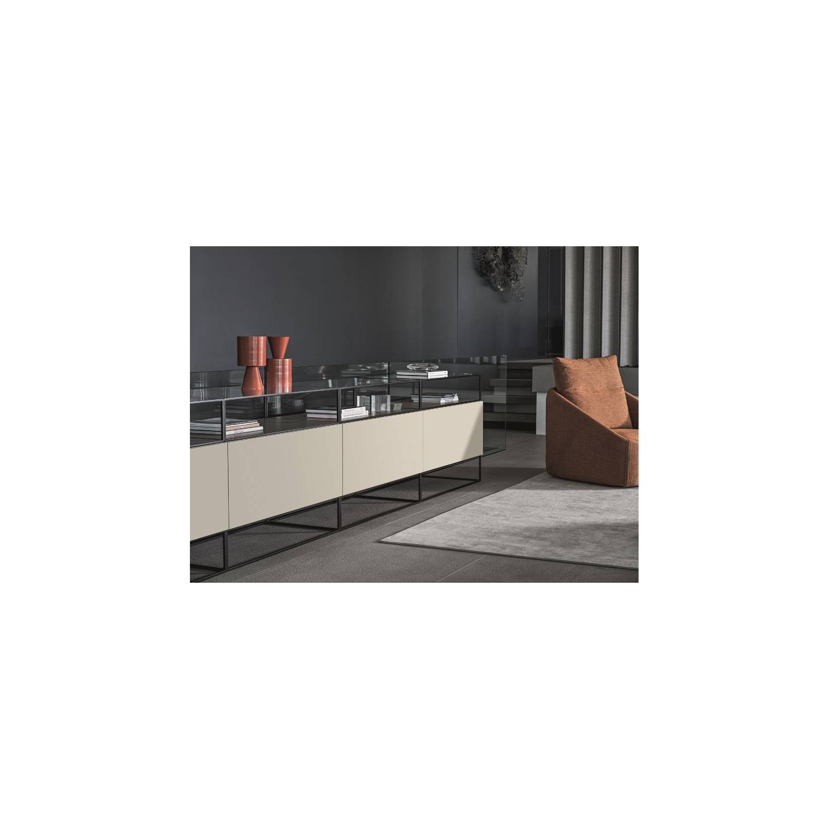Unit is a modular storage system that expresses its beauty through alternating solids and voids. We could define it as practical architecture, so linear and elegant that it can enhance any space. Glass cabinets on metal bases make for harmonious, flexible arrangements.