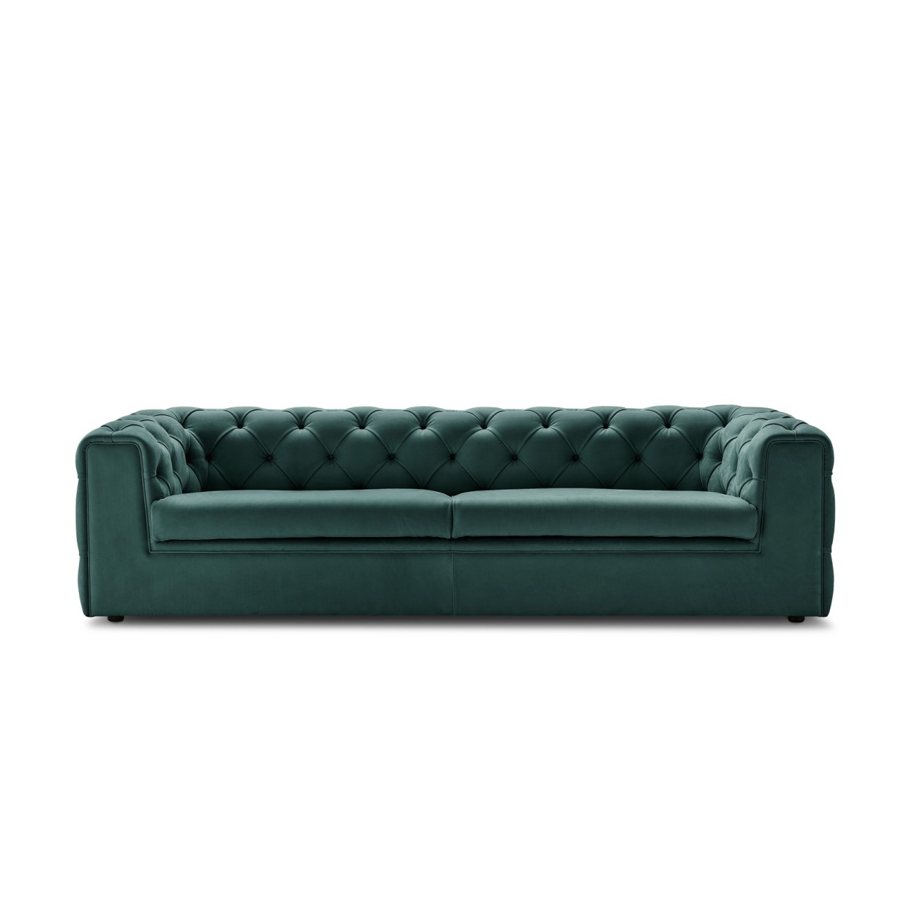 This comfort is achieved through a reinterpretation of the capitonné technique, with large diamonds, soft padding, and a looser upholstery that moves away from the traditional rigidity of past models. The forms are lightened by the clean, linear profile of the seating, while the special design of the backrest not only adds elegance but also creates an effect of greater depth in the surfaces. Tudor thus becomes not only an extraordinarily beautiful and comfortable piece of furniture but also a dramatic focal point in the relaxation area of the home.