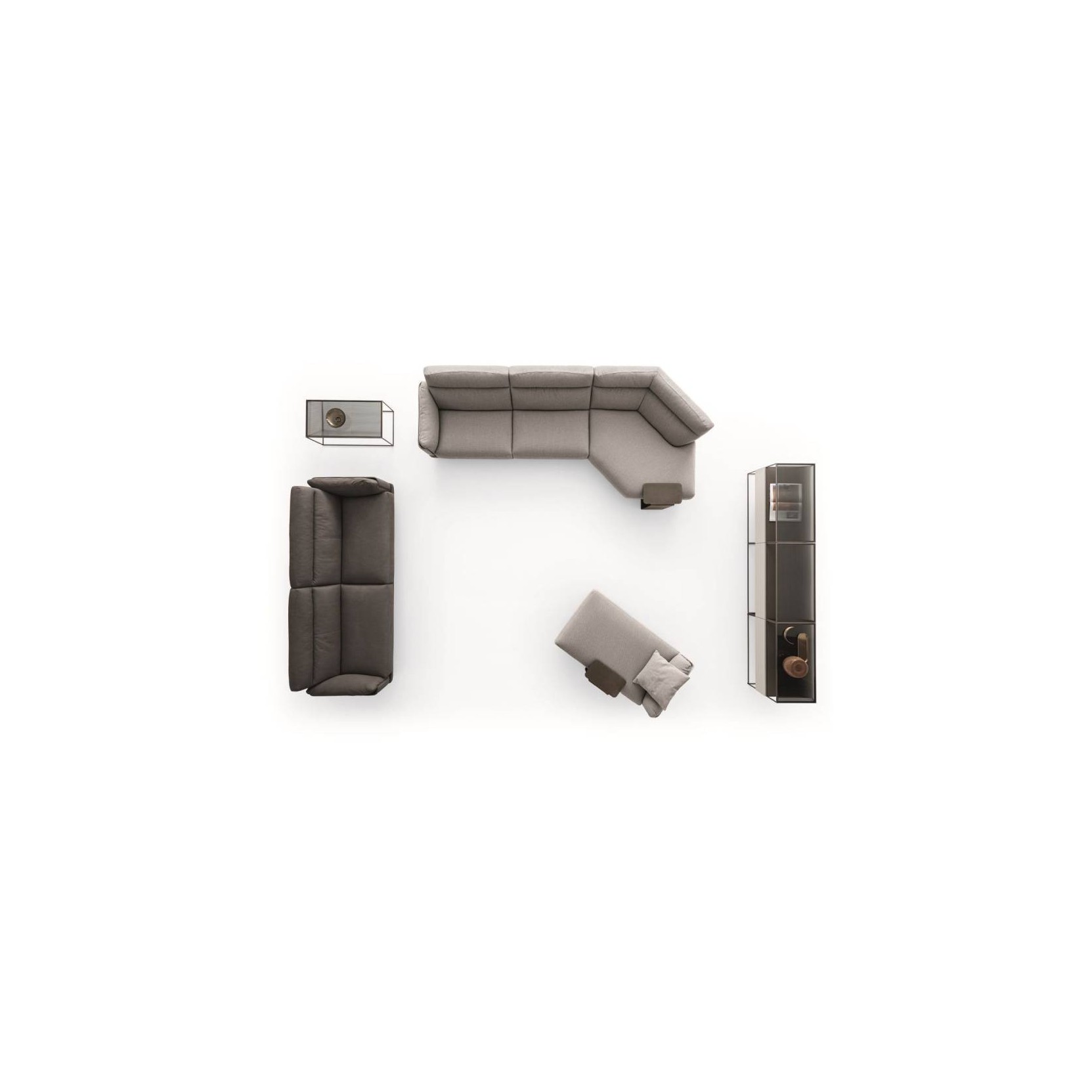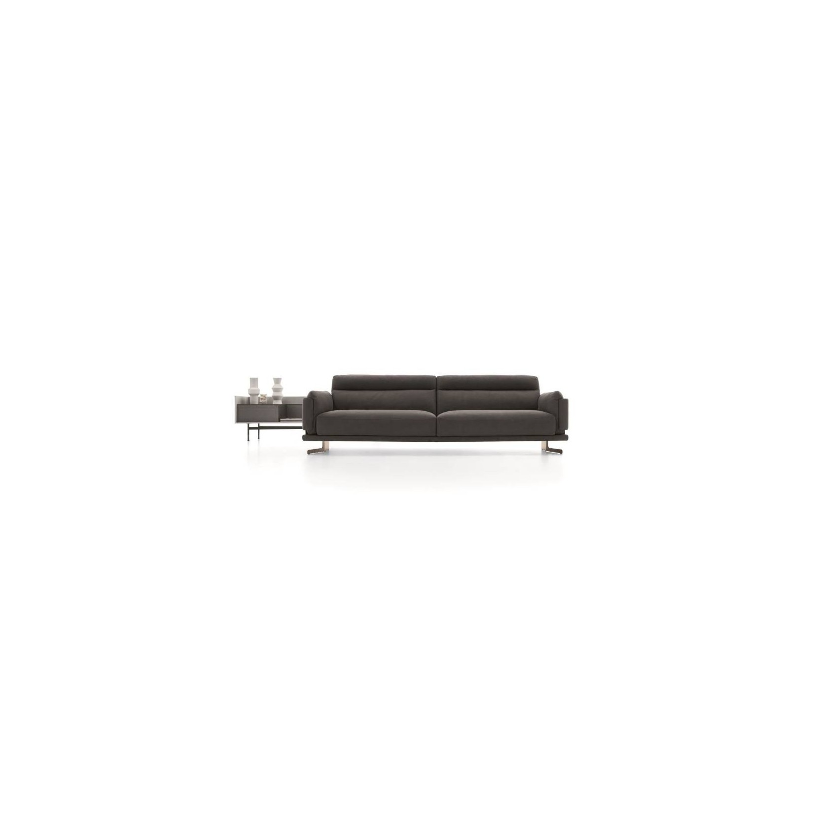 Skin redefines the sofa concept by means of a set of cushions that are contained within the side structure. In fact, the sides become an accessory and new, more comfortable and particularly soft and enveloping seats are a benefit that comes hand-in-hand with the redefinition of this sofa’s structure.