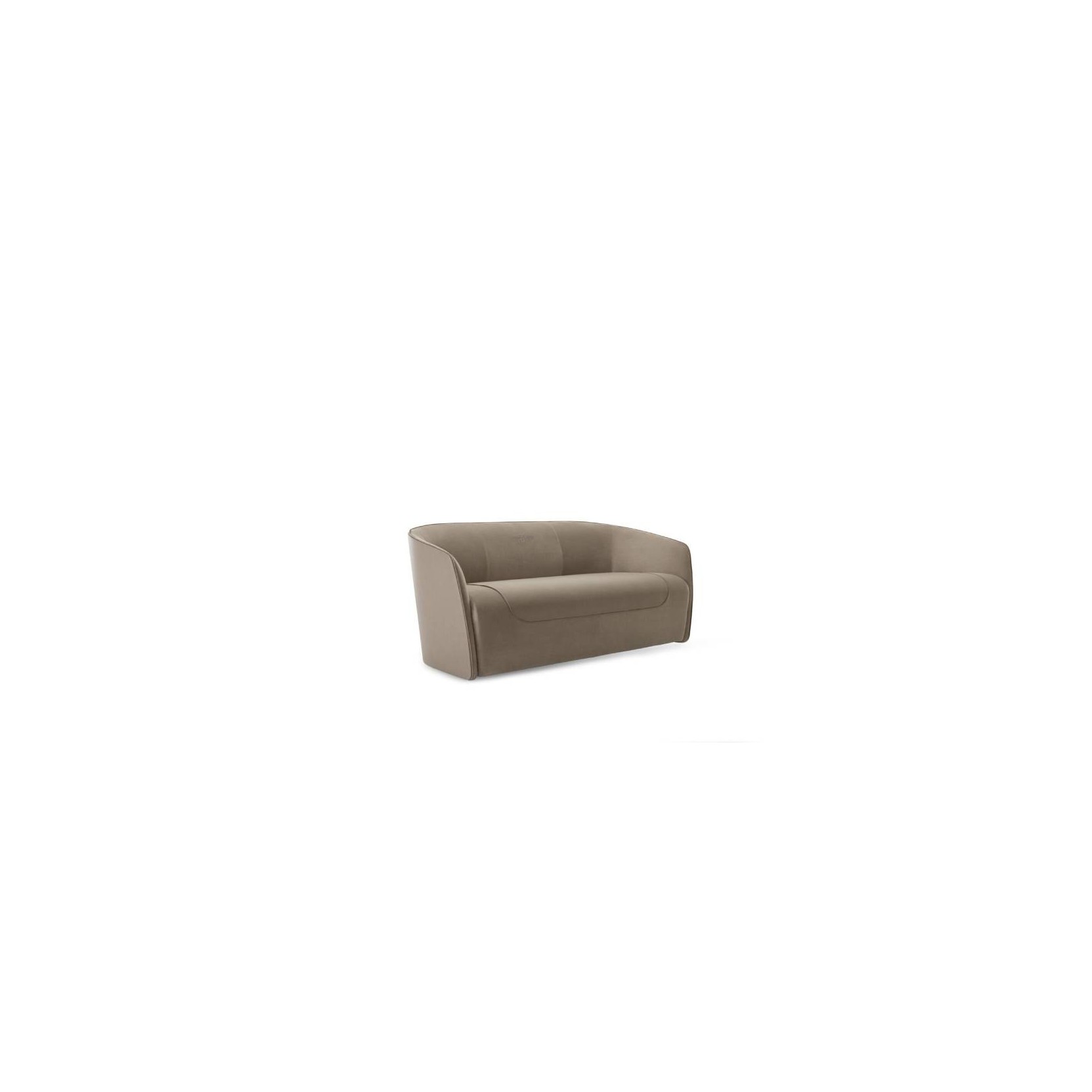 The proportionate traits and the lounging taste of the small Rugby armchair have been carried over to the sofa version. All the charm of the elegance expressed in forms that never go out of style in a design which is reminiscent of British golf club settings. The enveloping features of the wide body, made in precious briar-root, embrace the padding of the base upholstered with fabric or leather, measured by a piping which traces the outline of the seat.