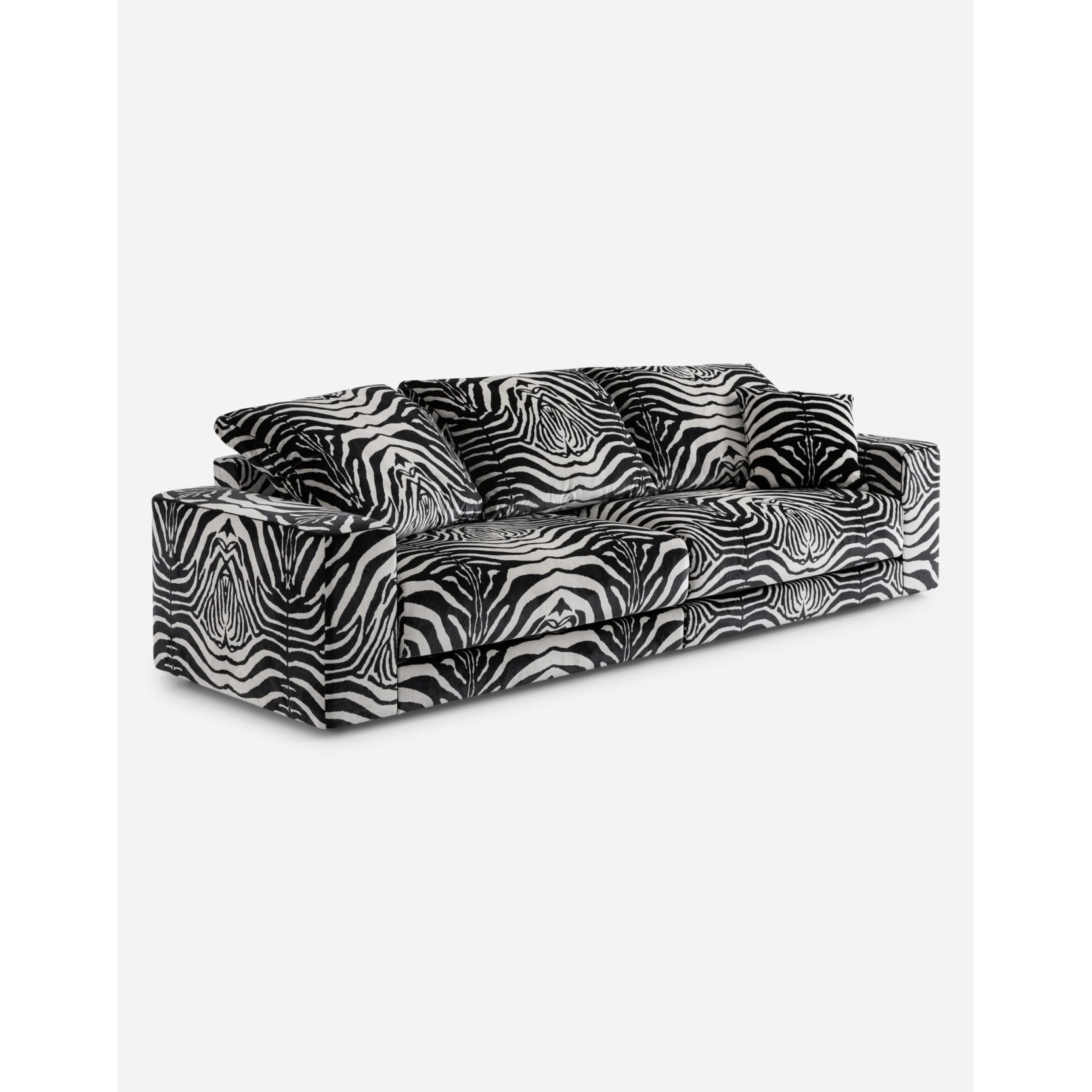 The Fresia sofa by Dolce&Gabbana, with its solid squared structure and generously padded cushions, invites relaxation and socializing, enriching living rooms and lounge areas with its timeless design.