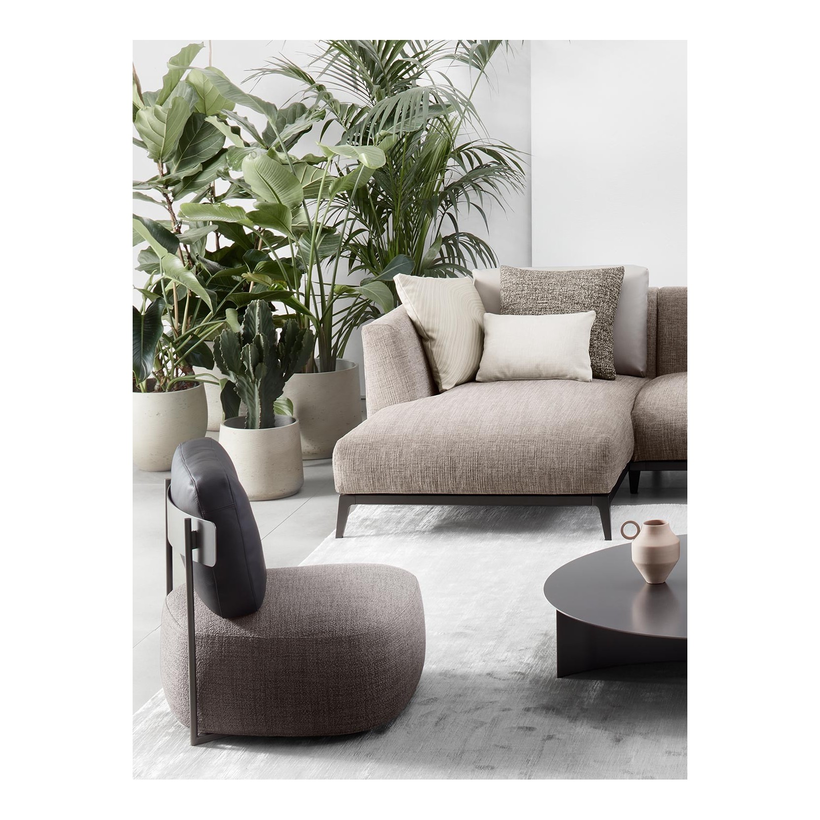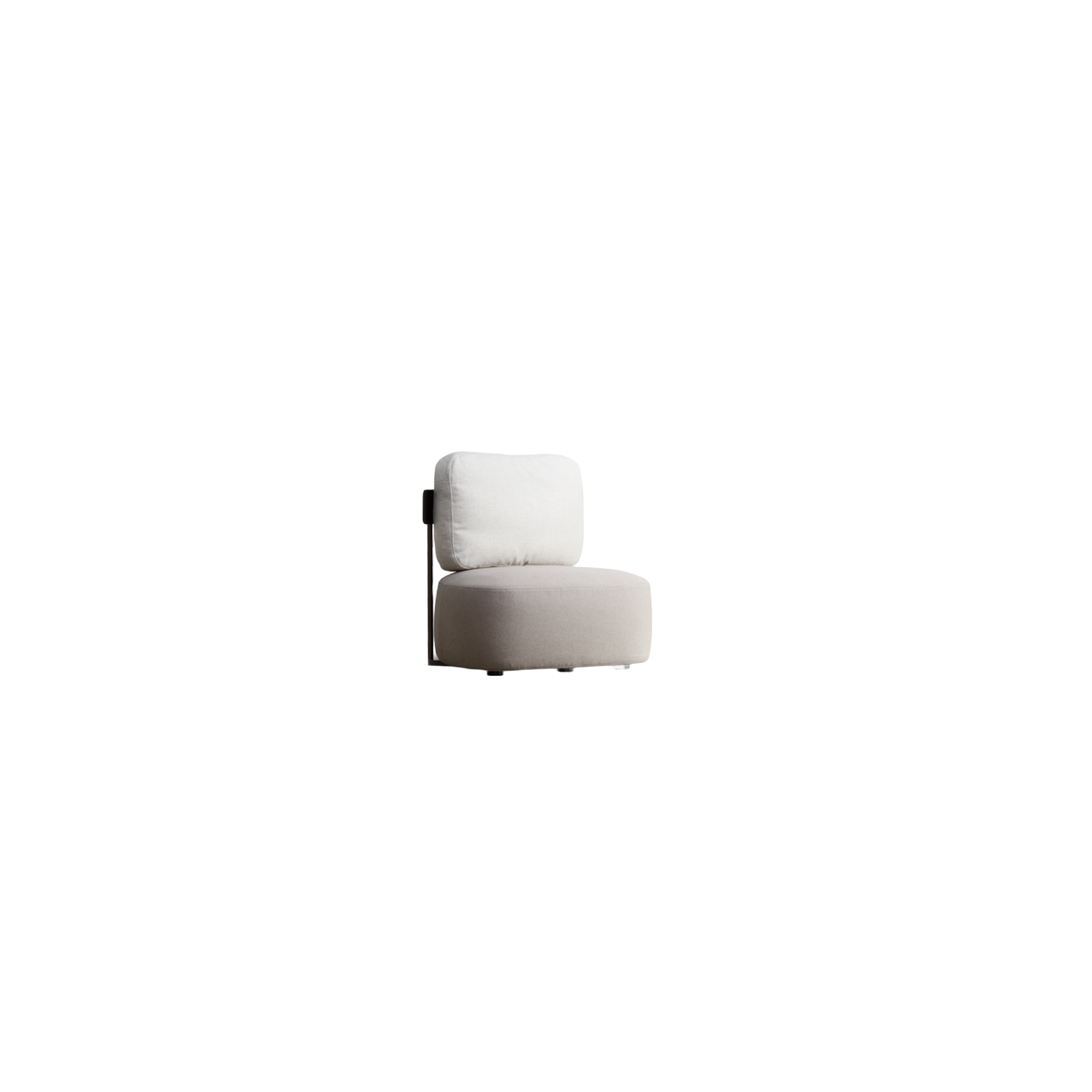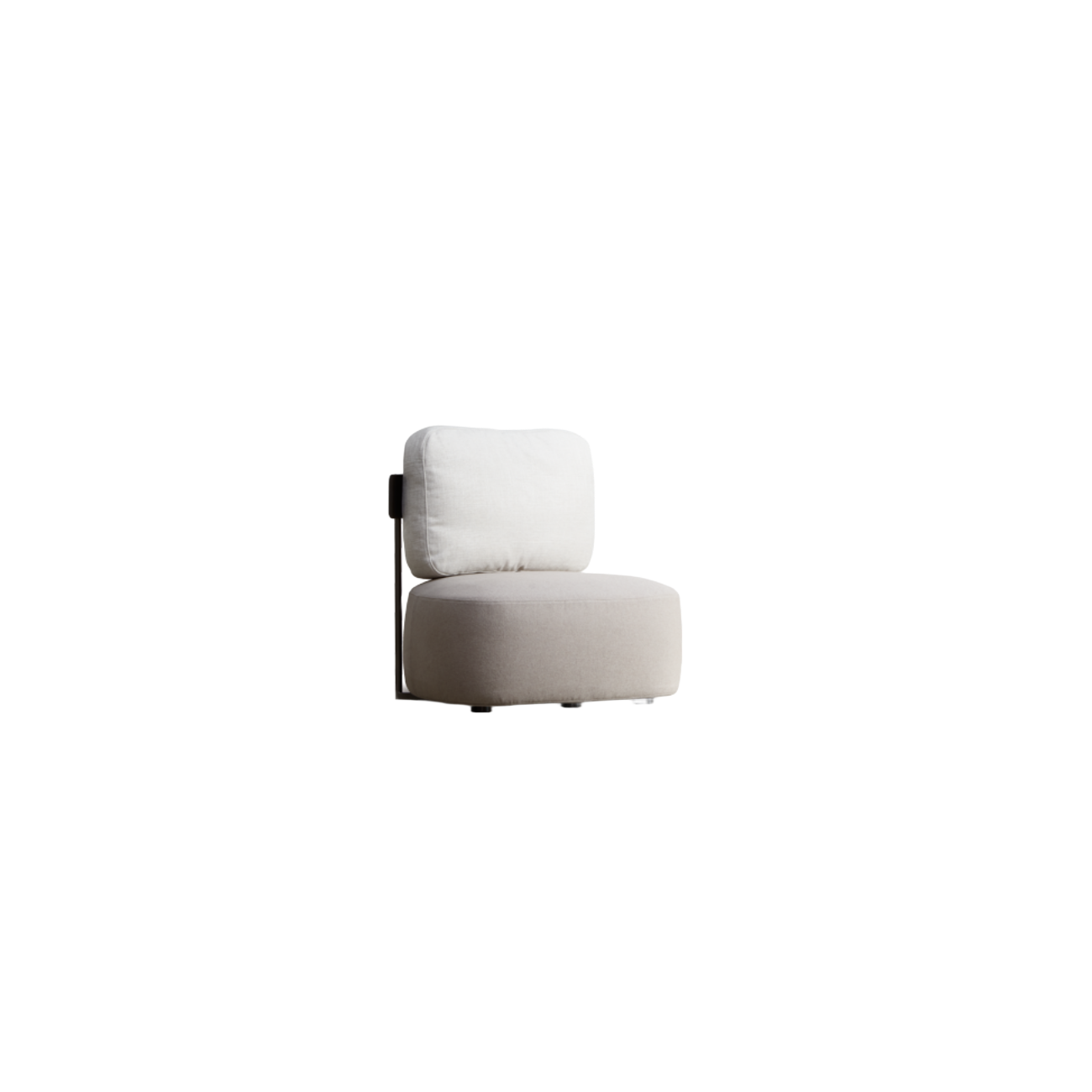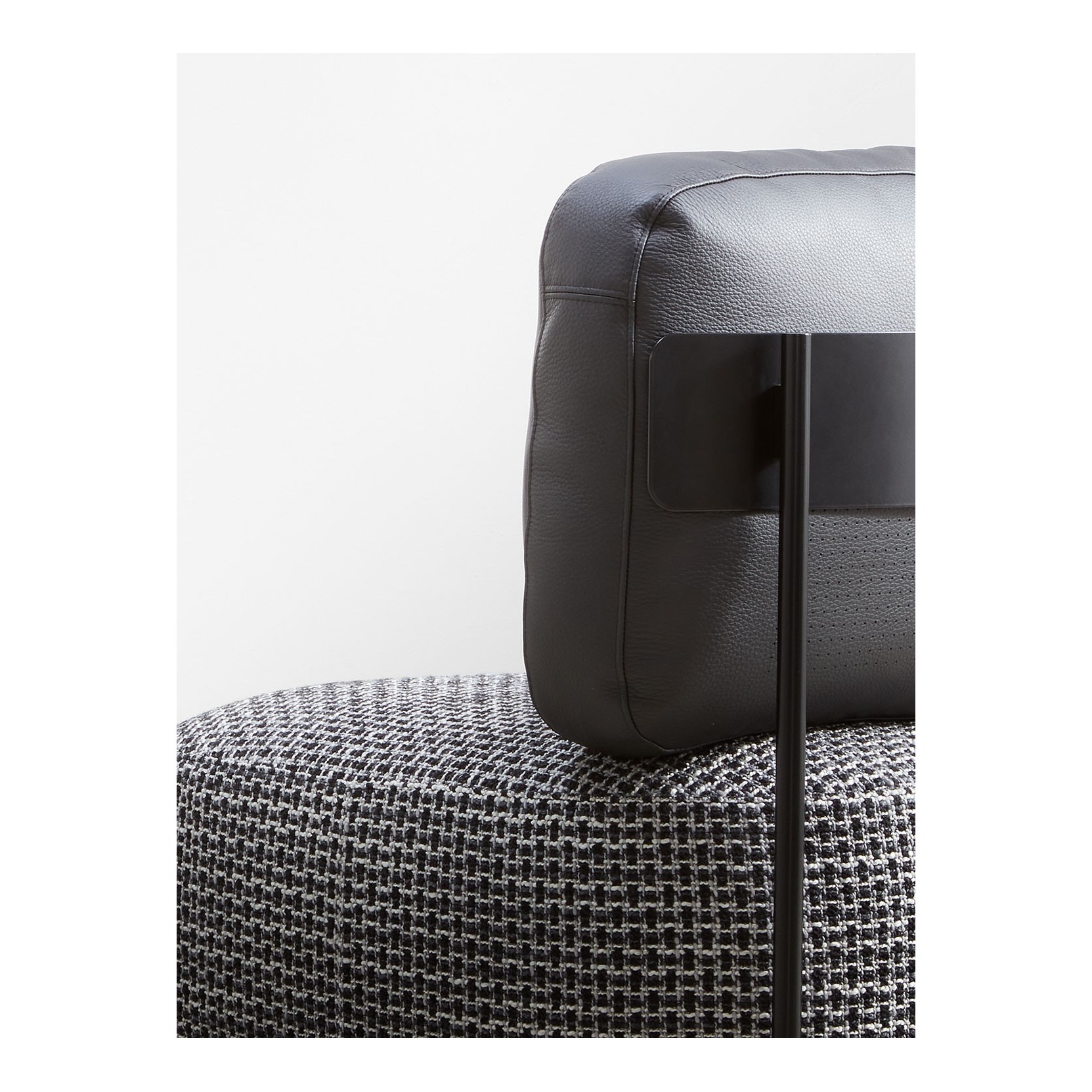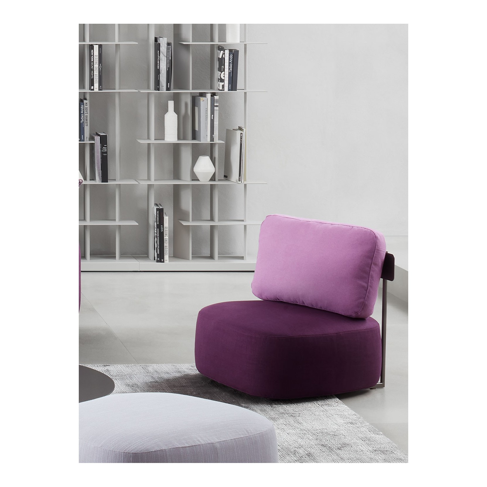 Pierre, designed by Studio Contromano in 2021, is an armchair with a soft and irregular shape, featuring a padded seat upholstered in fully removable fabric or leather.