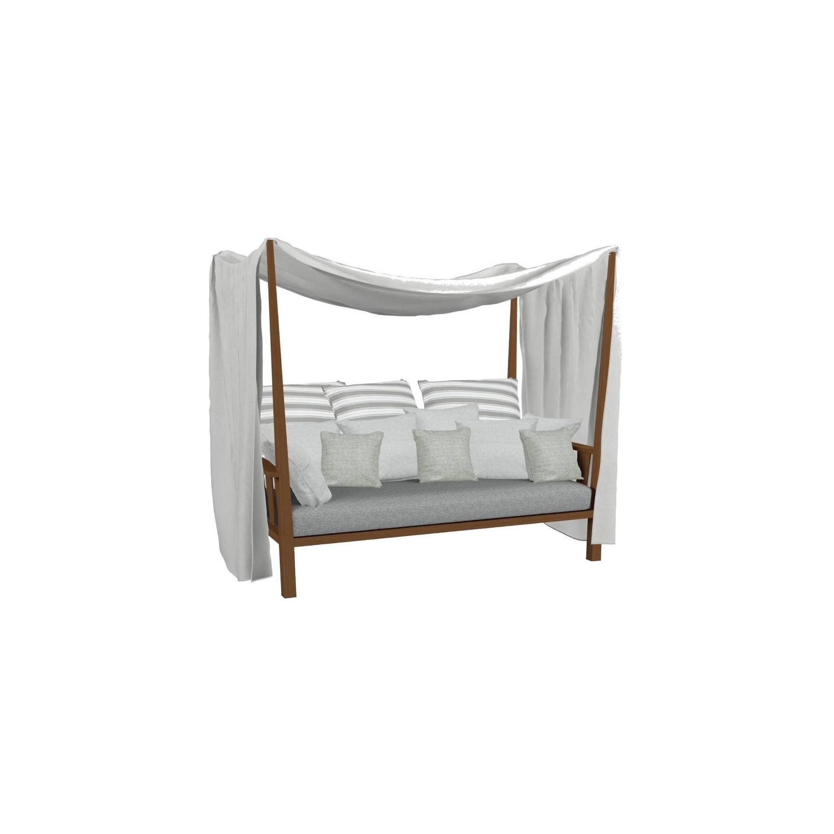 InOut 07 is a canopy sofa by Paola Navone for Gervasoni. Teak frame and back cushions: three 40x40 cm, six 60x60 cm, three 80x80 cm.