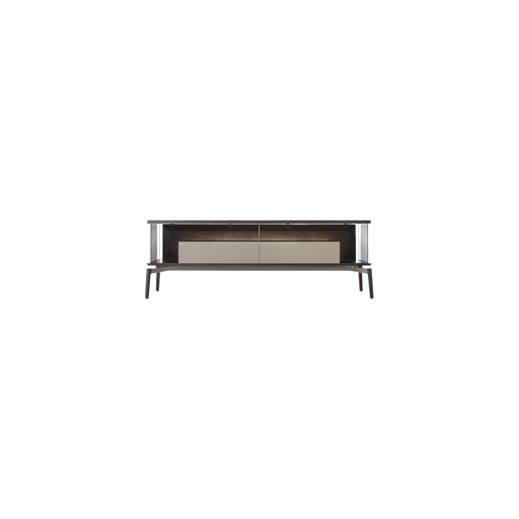 Each variant comes with either a pewter-painted metal base and legs combining painted metal and solid ash, or a full ash wood base, all in a range of finishes. The top can be made of ash, marble, or leather, while the drawer unit, crafted in ash, features leather-clad fronts. A discreet LED profile illuminates the rear of the drawer unit, adding a subtle and elegant touch of light.