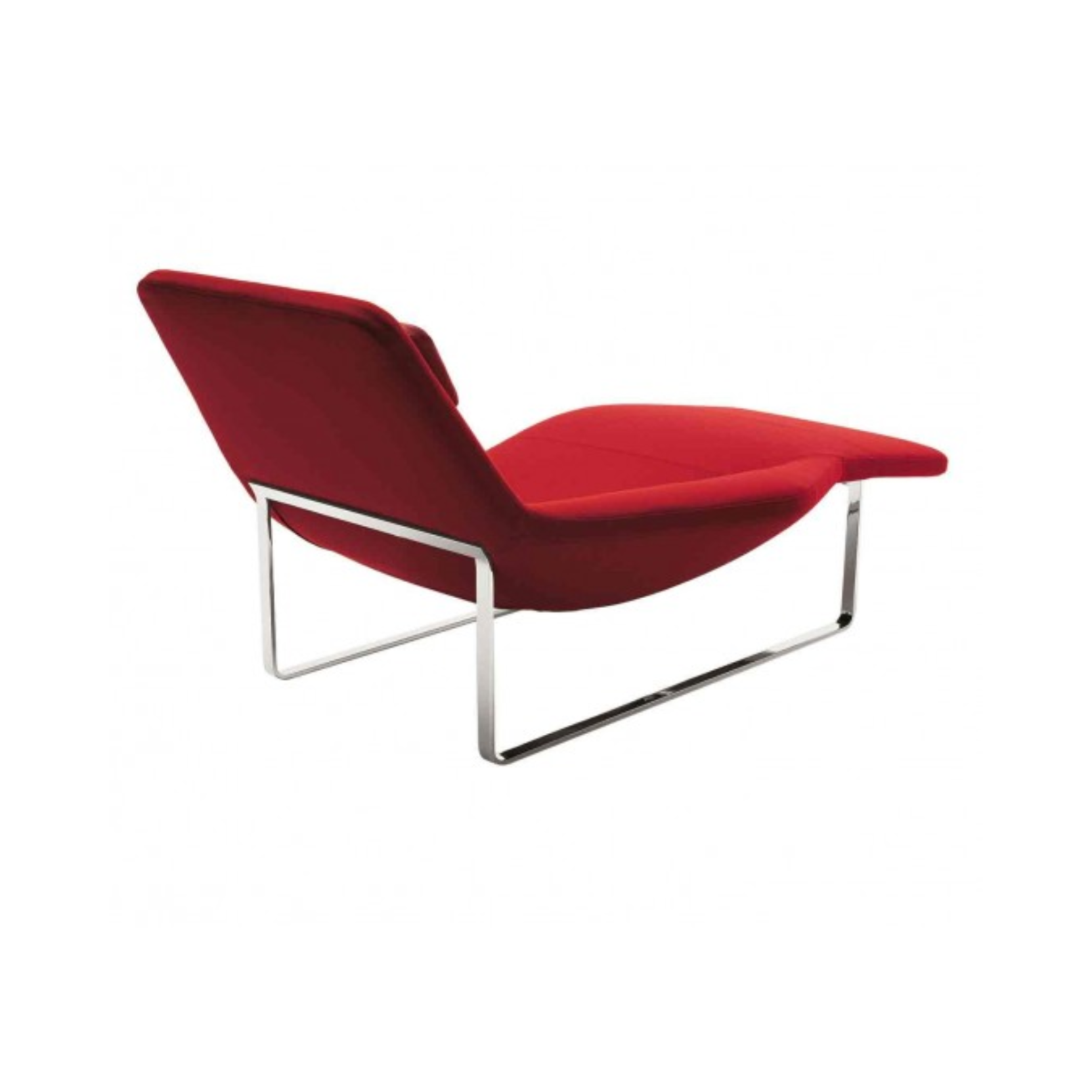 Landscape '05 is a chaise longue with a futuristic and minimalist style, designed by Jeffrey Bernett for B&B Italia. Compared to the original version, it is enhanced with an armrest and an adjustable headrest, secured with a magnet for greater practicality and customization. The steel frame, available in two elegant finishes, supports a segmented upholstered cover, available in both fabric and leather. Thanks to its lightweight and modern presence, Landscape '05 adds a touch of sophistication and avant-garde style to any space.