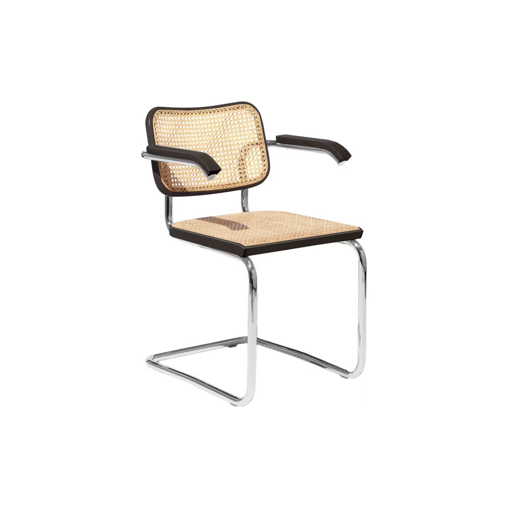 The chair features a cantilevered tubular steel frame inspired by bicycle construction, allowing it to support the sitter without rear legs while providing exceptional comfort. The seat and backrest are carefully proportioned to distribute weight evenly, and the cantilevered structure demands precise craftsmanship to balance strength with visual lightness. The combination of metal and natural materials is designed for durability and long-lasting resilience, preserving the clean lines and minimalist elegance that have made the Cesca Chair an enduring classic of international design.