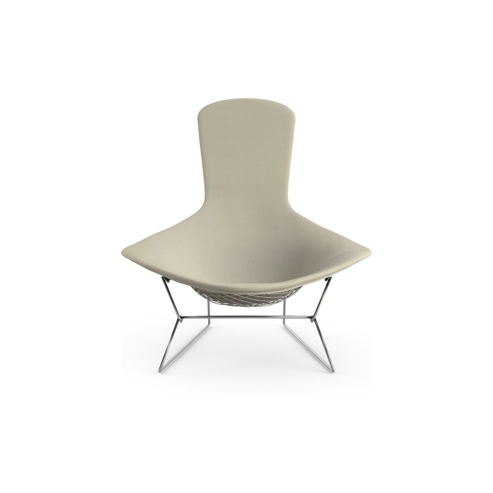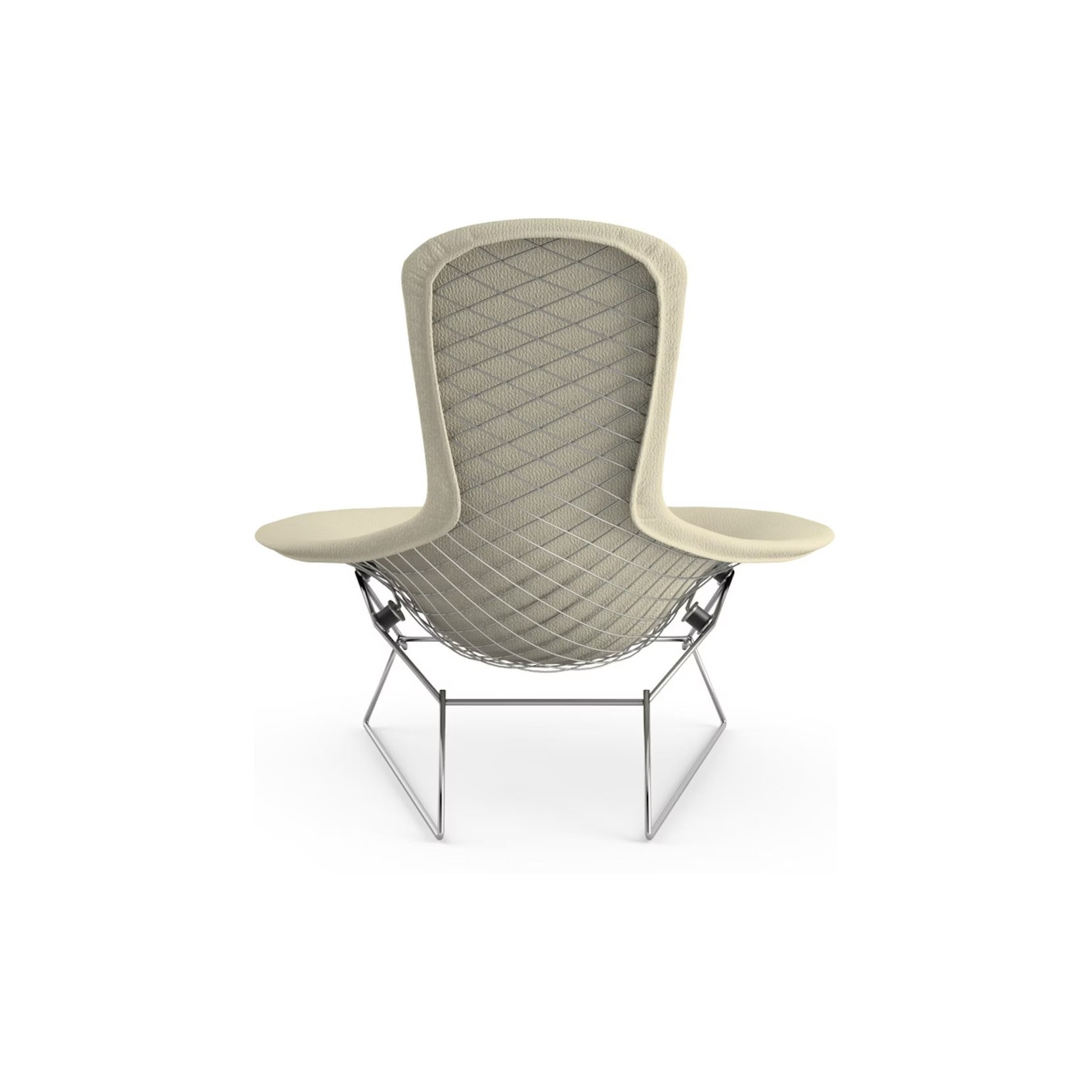 Harry Bertoia’s Bird Armchair is an extraordinary study in space, form, and function, elevating industrial metal into a light and elegant work of art. The airy grid lines and sculptural structure make the armchair an iconic example of mid-century modern design, providing character and dynamism to any space while maintaining the signature identity of the Bertoia collection.