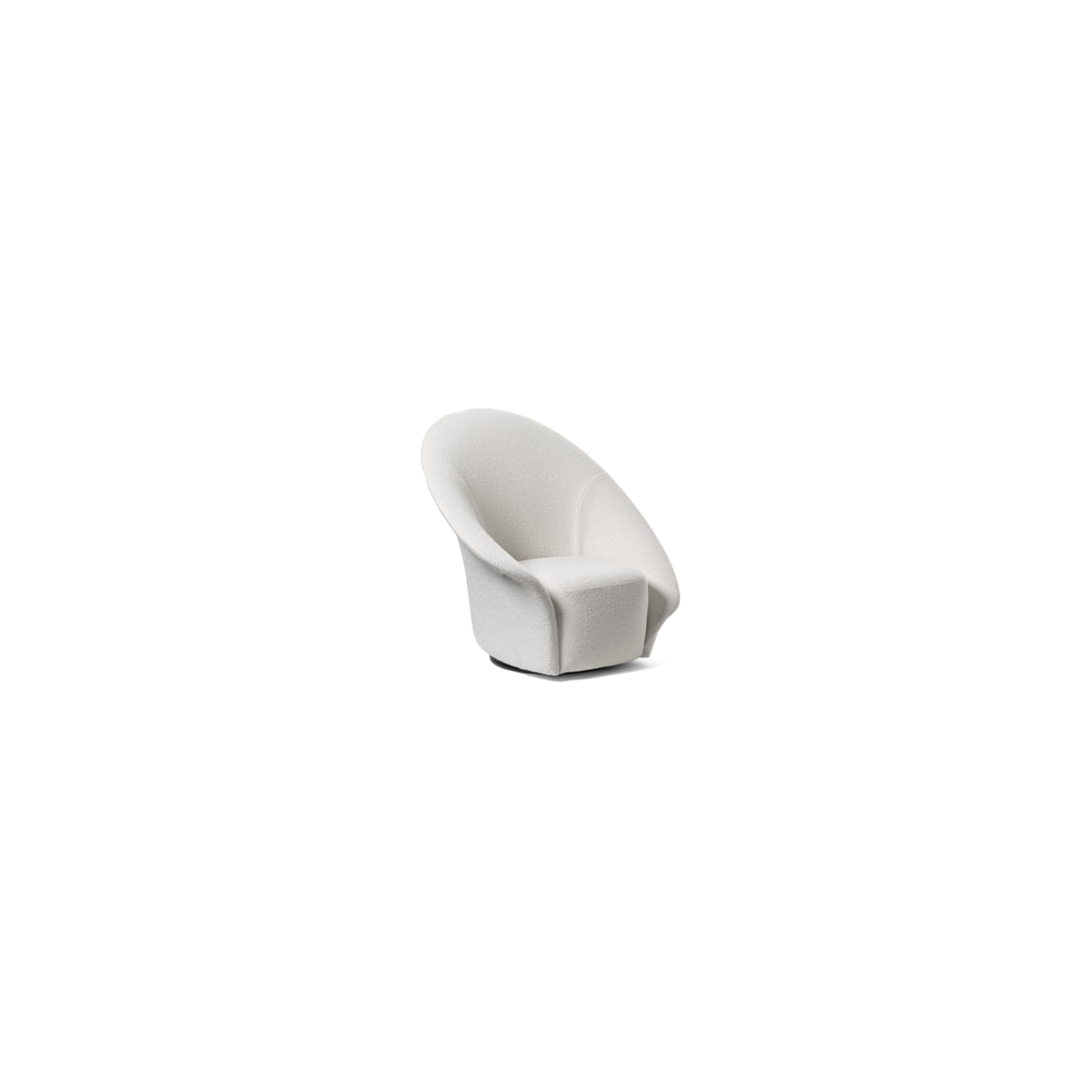 The Lilia armchair, designed by Steve Leung in 2020, is a 360° swivel seat defined by its organic and embracing shape, reminiscent of a delicately blossoming flower.