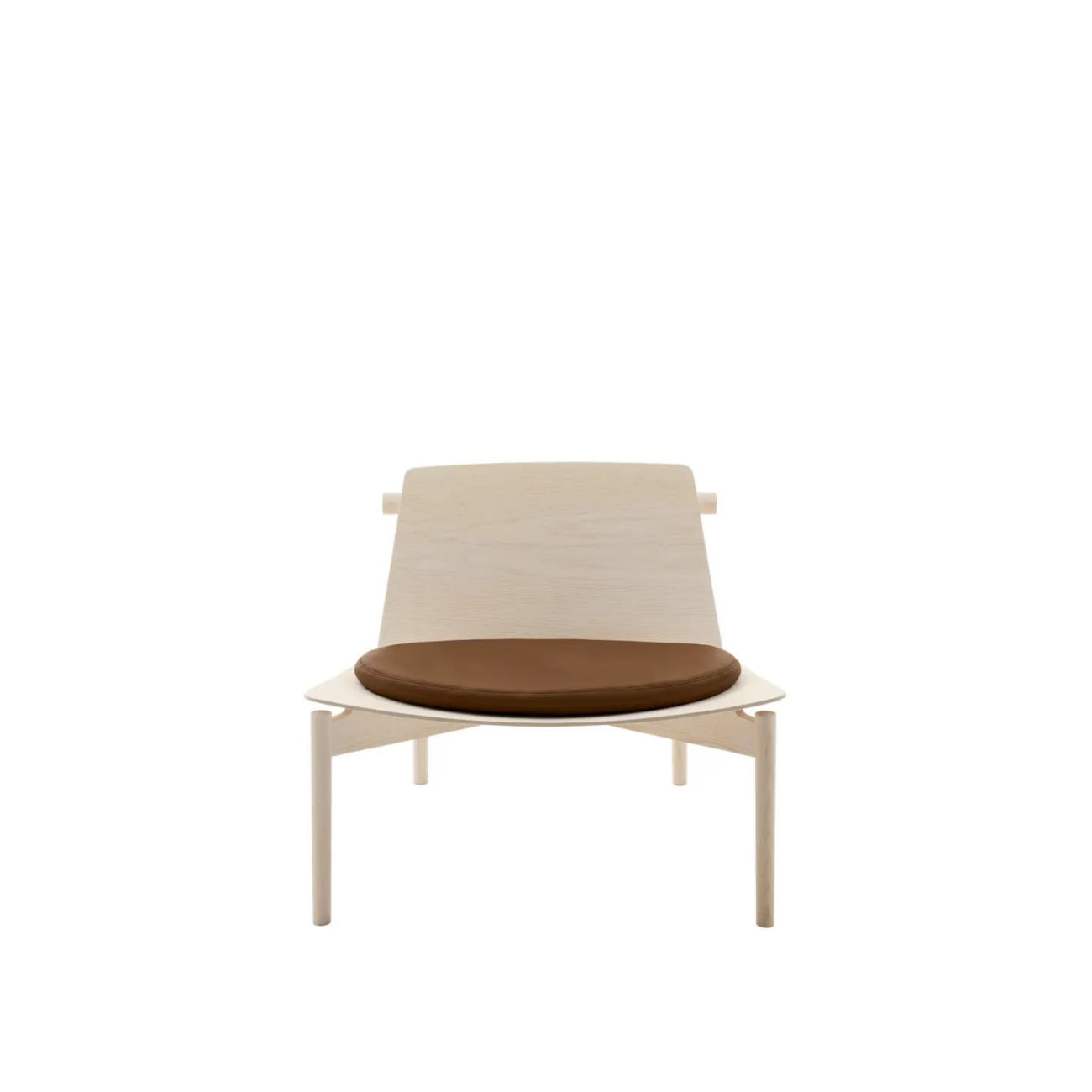 Eryt is the new armchair designed by Piero Lissoni, inspired by the Scandinavian design of the 1950s and the refinement of Japanese culture. Characterized by a strong graphic presence and an inviting aesthetic, its structure combines the rigor of Nordic lines with Eastern elegance, thanks to the expert use of selected materials. The solid ash wood frame, precisely turned, supports a curved plywood backrest and a comfortable seat. Eryt is available in an all-wood version or with a leather-upholstered seat, and can be completed with an elliptical cushion, upholstered in fabric or leather, for an added touch of comfort. The minimalist design is created to meet functional needs, offering a lightweight aesthetic while ensuring great comfort.