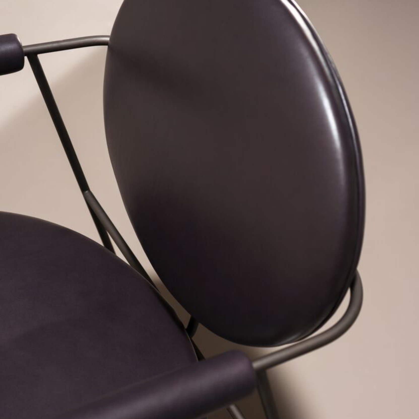 When we place it in the dining room, around a table, it could create a relaxed and informal atmosphere for guests; in an office it invites you to share ideas; in the living room it is a harmonious interlude between the other seats. In its lively lines, given by the connections between the backrest and the armrests, and the padding and the metal rod structure, we find a play of solids and voids that refers to the interiors of Italian auteur cinema, to those villas of existentialism where to be the master, together with the feelings of the protagonists, was the taste with which they dressed their own reality.