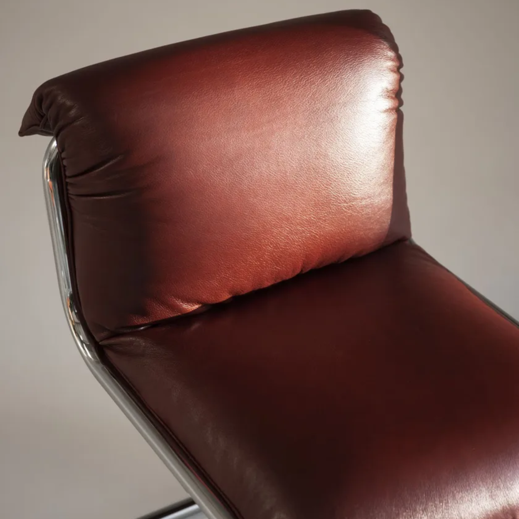 The So Far chair, designed by Studiopepe for Baxter, represents a perfect balance between elegance and functionality. Its structure, made of hand-brushed darkened metal or refined glossy chrome, gives it a contemporary and sophisticated appearance. The upholstery, crafted from differentiated-density polyurethane foam and covered with a soft acrylic fiber, ensures unparalleled comfort, while the leather or sheepskin covering, enhanced by a decorative leather profile, adds a touch of luxury. The So Far chair stands out for its light and modern design, characterized by a tubular structure that supports an enveloping and original seat. The drape that wraps around the backrest and armrests not only provides comfortable support but also lends a unique and refined charm. Available in versions with and without armrests, this design chair is ideal for enhancing living spaces, making them more inviting and stylish.