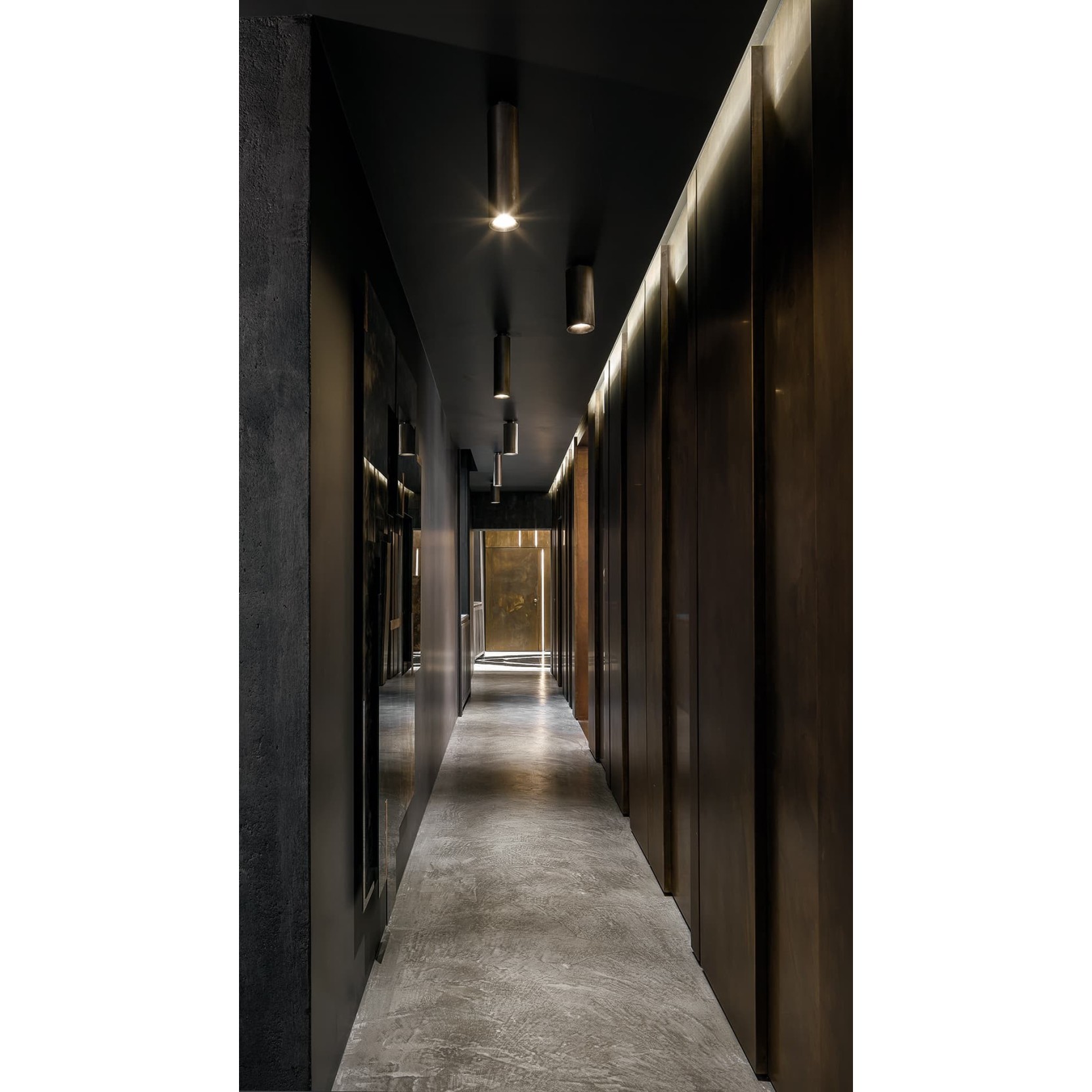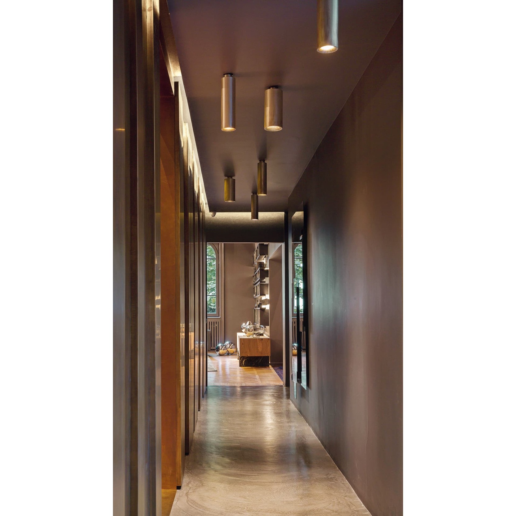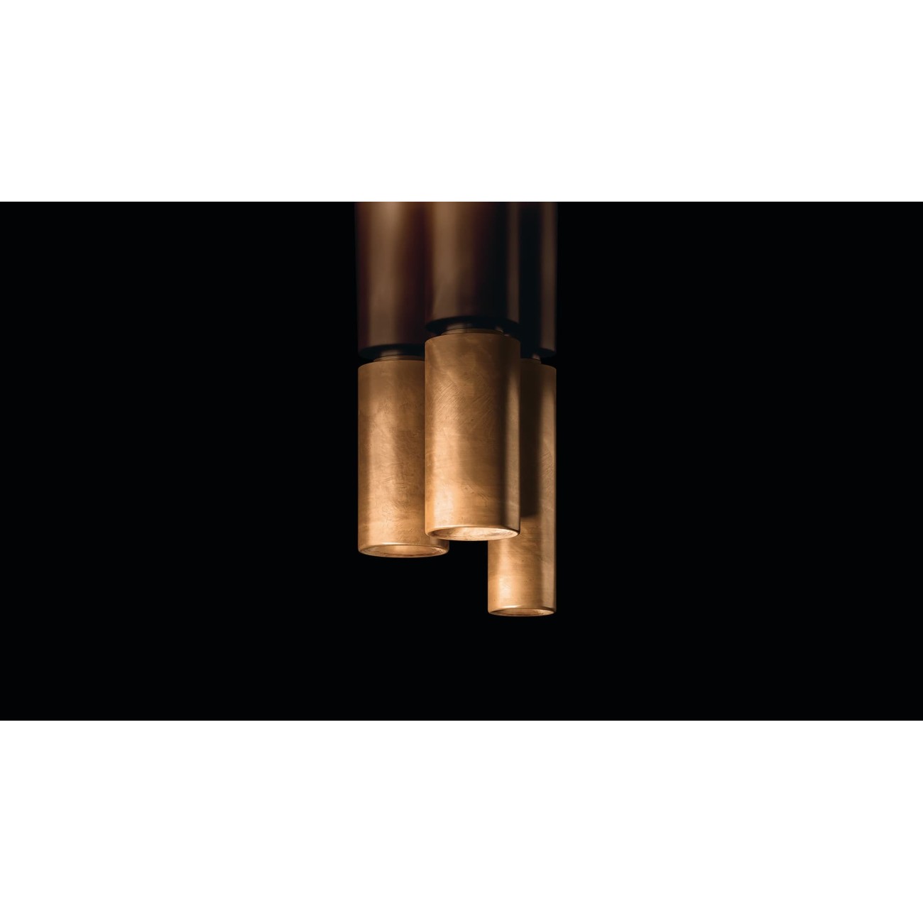 Tele Light is a ceiling-mounted lamp crafted from metal and equipped with a COB LED light source emitting warm light with high energy efficiency. Its compact dimensions – Ø 9x34h cm and Ø 12x26h cm – allow it to adapt easily to different spatial contexts, whether used alone or in dynamic compositions. On request, it is available with extra warm 2700K light, dimming functionality, and 110V compatibility. Each piece is handcrafted by skilled artisans: subtle variations in the finish are part of its identity, making every lamp a unique creation.