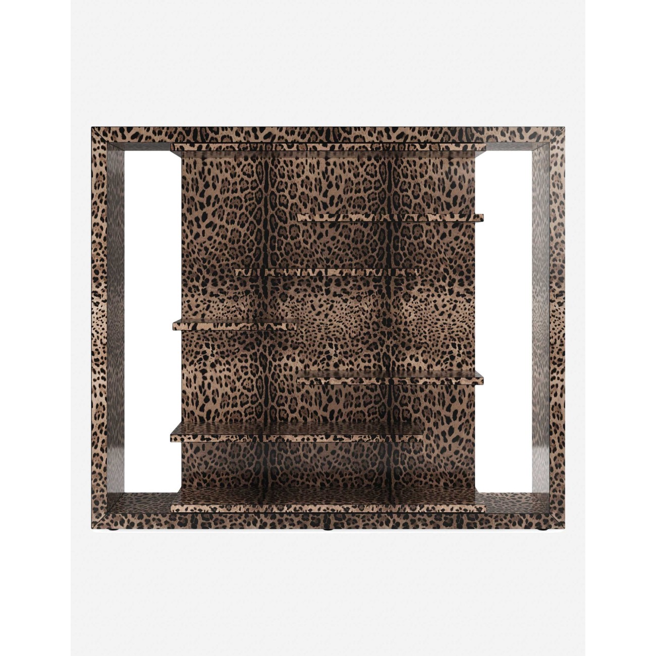 The Polifemo bookshelf is designed for those who want a design piece that is not only functional but also a work of art. The central panel, made of wood and decorated with Dolce&Gabbana's collection graphics, is the standout feature of the piece. This panel can slide laterally, revealing a rear area that continues the graphic theme, offering a fresh perspective from every angle.