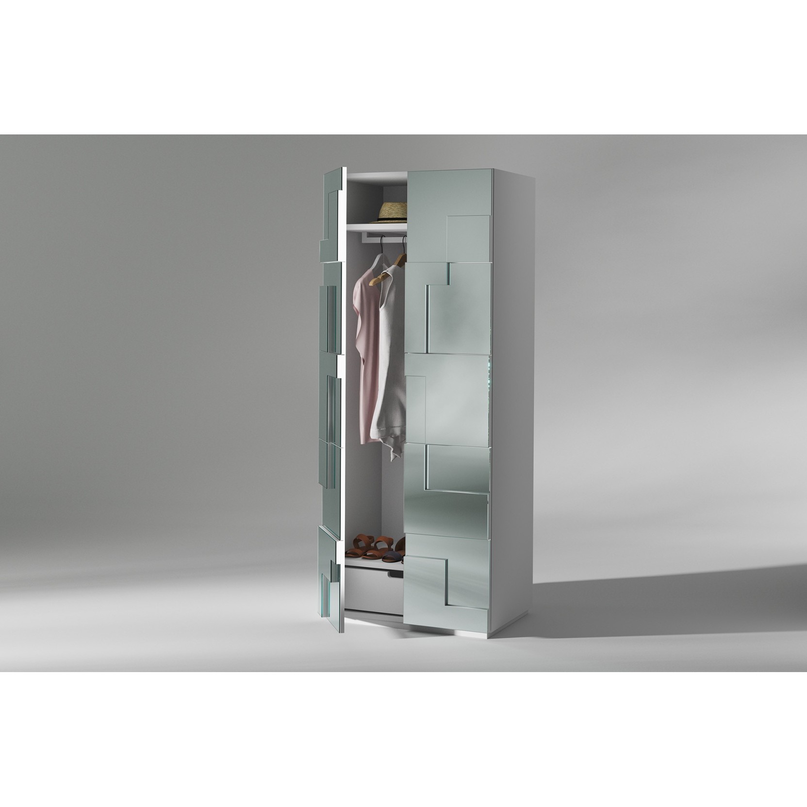 Designed by Carlo Cumini, this vertical wardrobe features a playful and innovative design. The mirror plexiglass doors, with varying thickness decorations, allow for a dynamic and original opening.