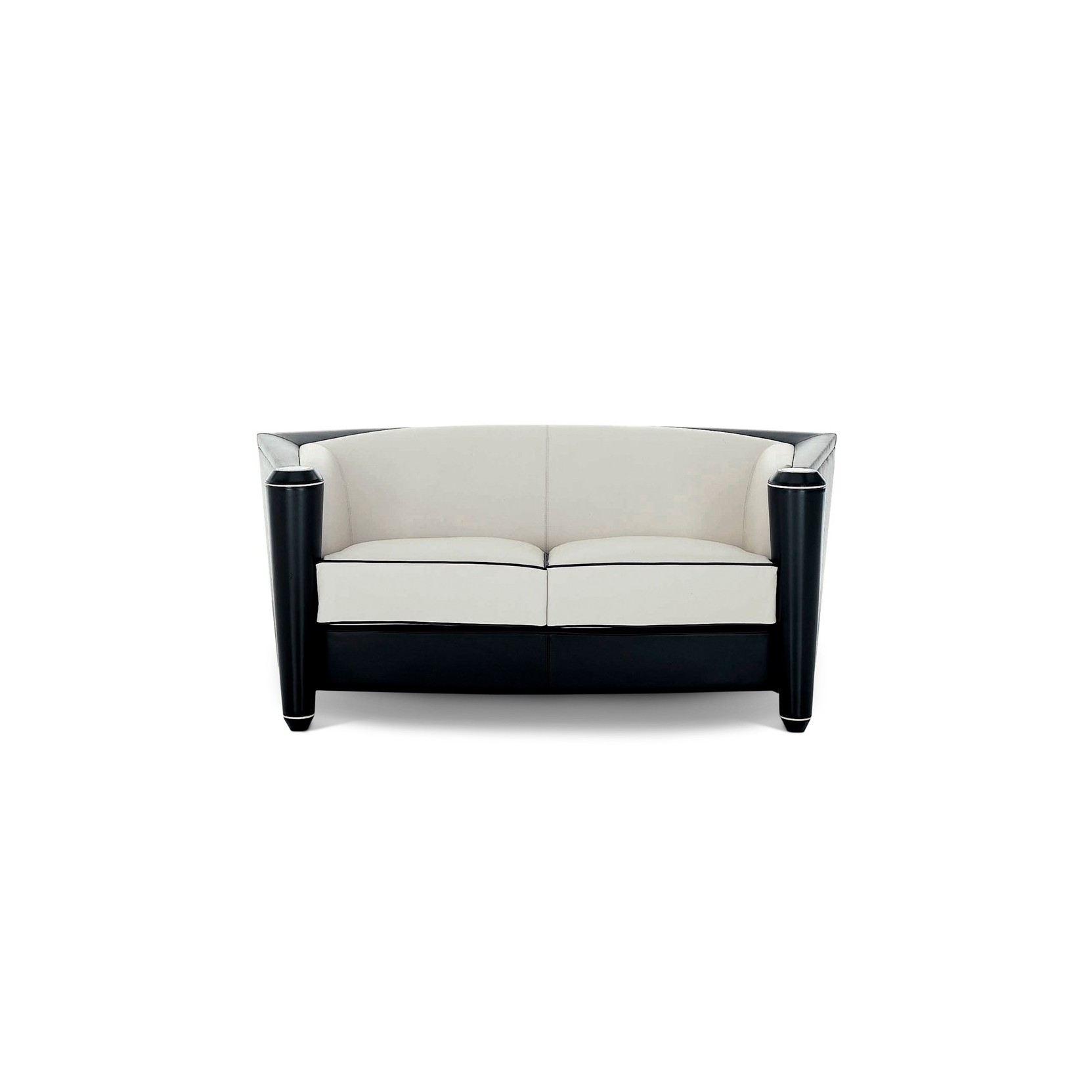 This highly successful collection features a three-seat sofa, a two-seat sofa, a club armchair, and an ottoman, all showcasing clear influences from the Art Deco style.