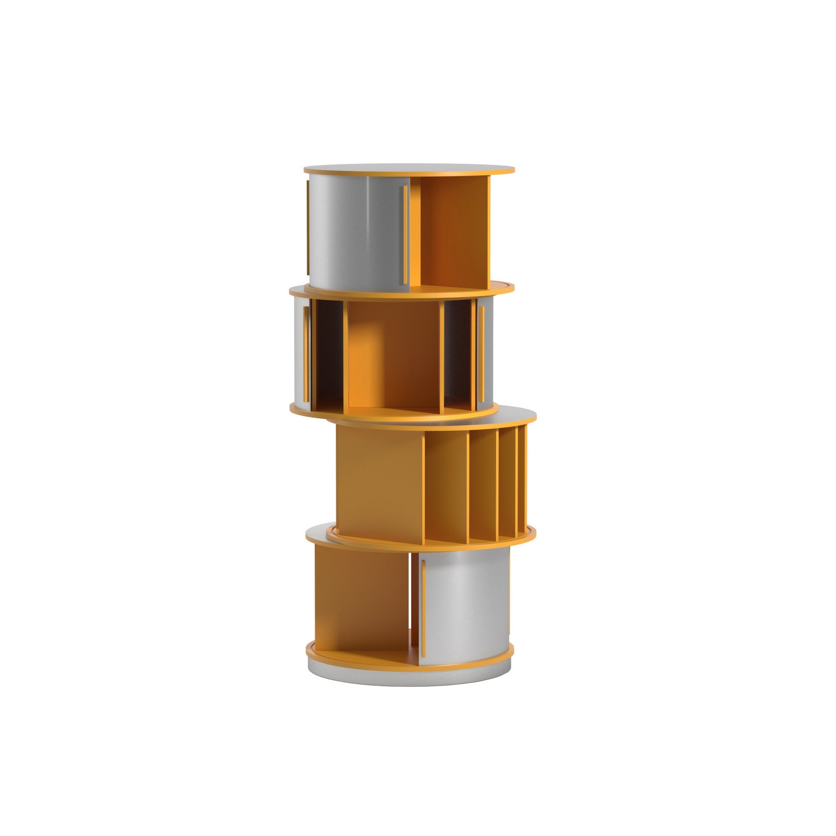 Combi Center Limited stands out for its cylindrical structure made up of four stacked elements, crafted in matte lacquered wood in the elegant finishes of pure white, intense black, and polenta yellow. The sliding doors, made from wood combined with aluminum, provide a modern aesthetic while ensuring durability over time. With its quality materials, versatile use, and timeless design, Combi Center Limited is perfect for decorating living rooms, bedrooms, offices, or commercial spaces, meeting the needs of those who seek furniture that combines functionality with innovation.