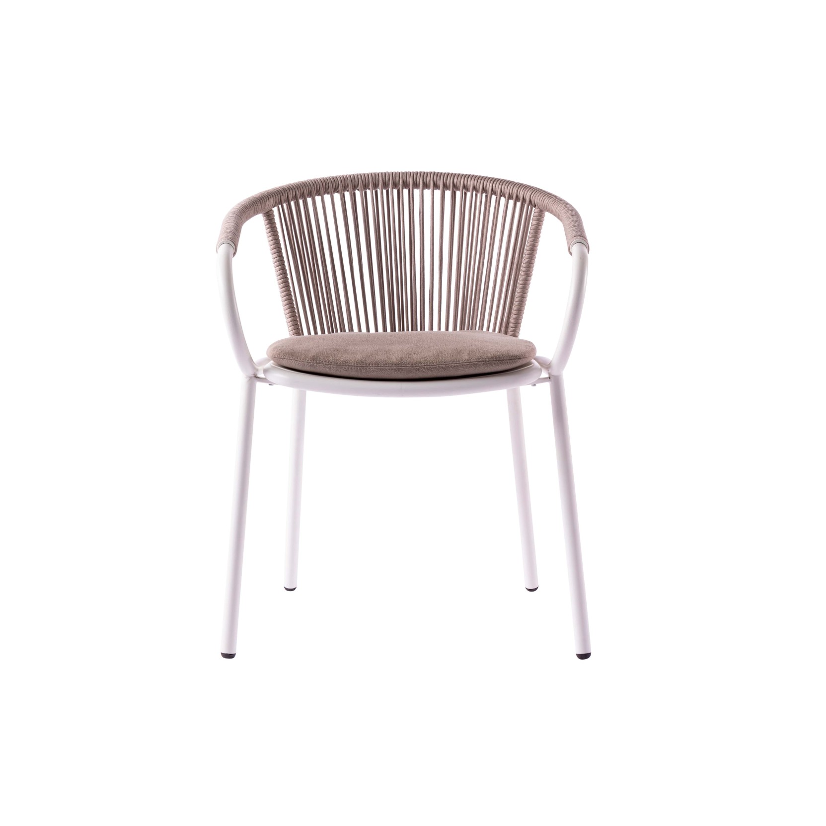 The hand-woven backrest and armrests give it a unique artisanal look, while the stainless steel and aluminum frame ensures durability and resistance to outdoor conditions. The removable cushion adds extra comfort and convenience, and the water drainage hole makes it perfect for outdoor use even during the rain. The glossy white finish, paired with the contrasting woven rope, adds a touch of refinement that seamlessly blends into any setting. Whether placed on a sunlit terrace, in a garden, or on a veranda, the Gilda Lido is more than just furniture: it's a statement piece. Perfect for those who seek elegance without compromising on practicality, it’s an excellent choice for enjoying outdoor spaces with a touch of luxury.