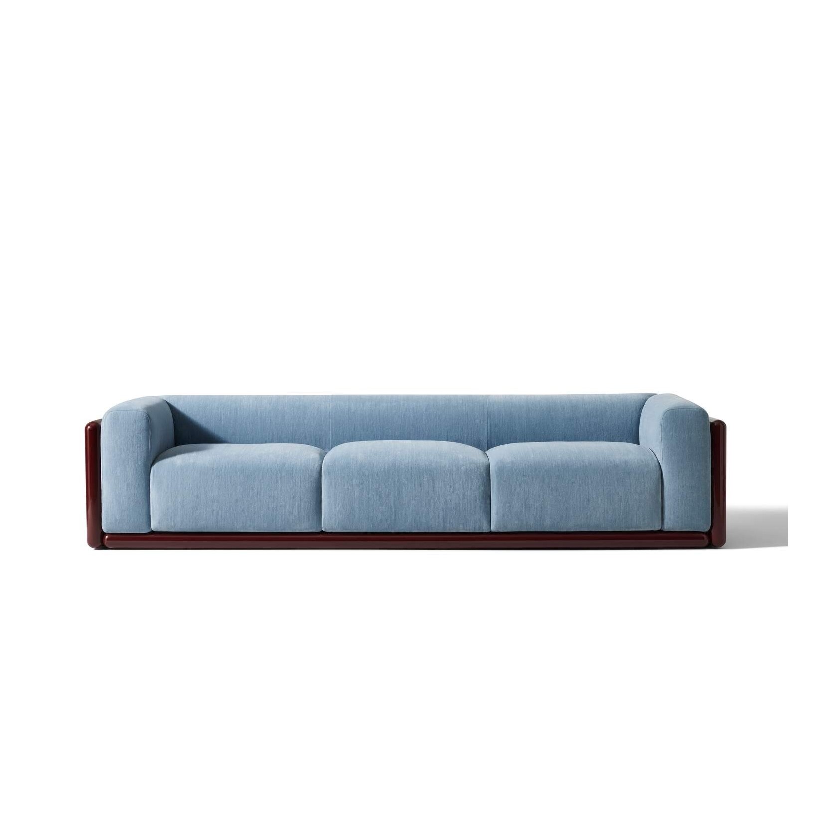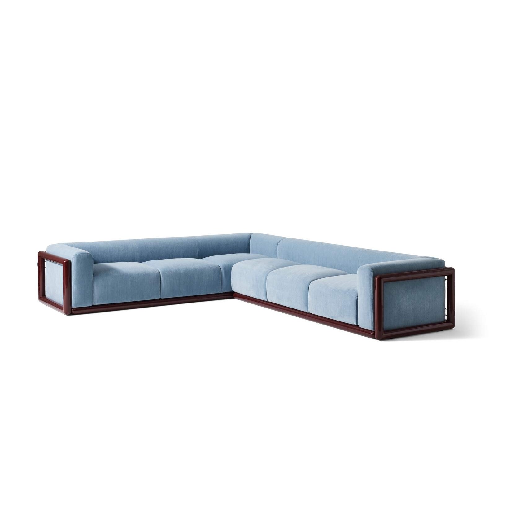 The solid wood base, with its austere design, embraces the upholstered volumes of the seat, backrest, and armrests, forming a sculptural and sophisticated whole. The sofa’s dimensions have been revised—its height and depth increased—through a meticulous research process developed in close collaboration with Tobia Scarpa. Every element has been refined with care, including the distinctive exposed black leather laces, housed in custom grommets that enable a seamless connection between backrest and frame. Also available as an armchair or as two- or three-seat end elements, Cornaro features removable covers and uses environmentally conscious materials such as recycled PET fibre and CIRCULARREFOAM® polyurethane, made in part with recycled or bio-based polyols. The frame is offered in either gloss-lacquered beech or matte open-pore ash, providing versatile stylistic choices.