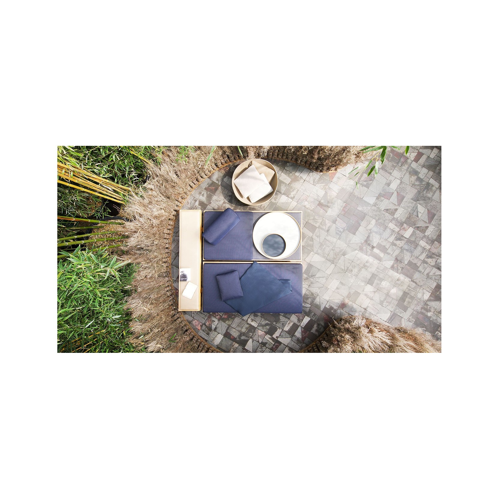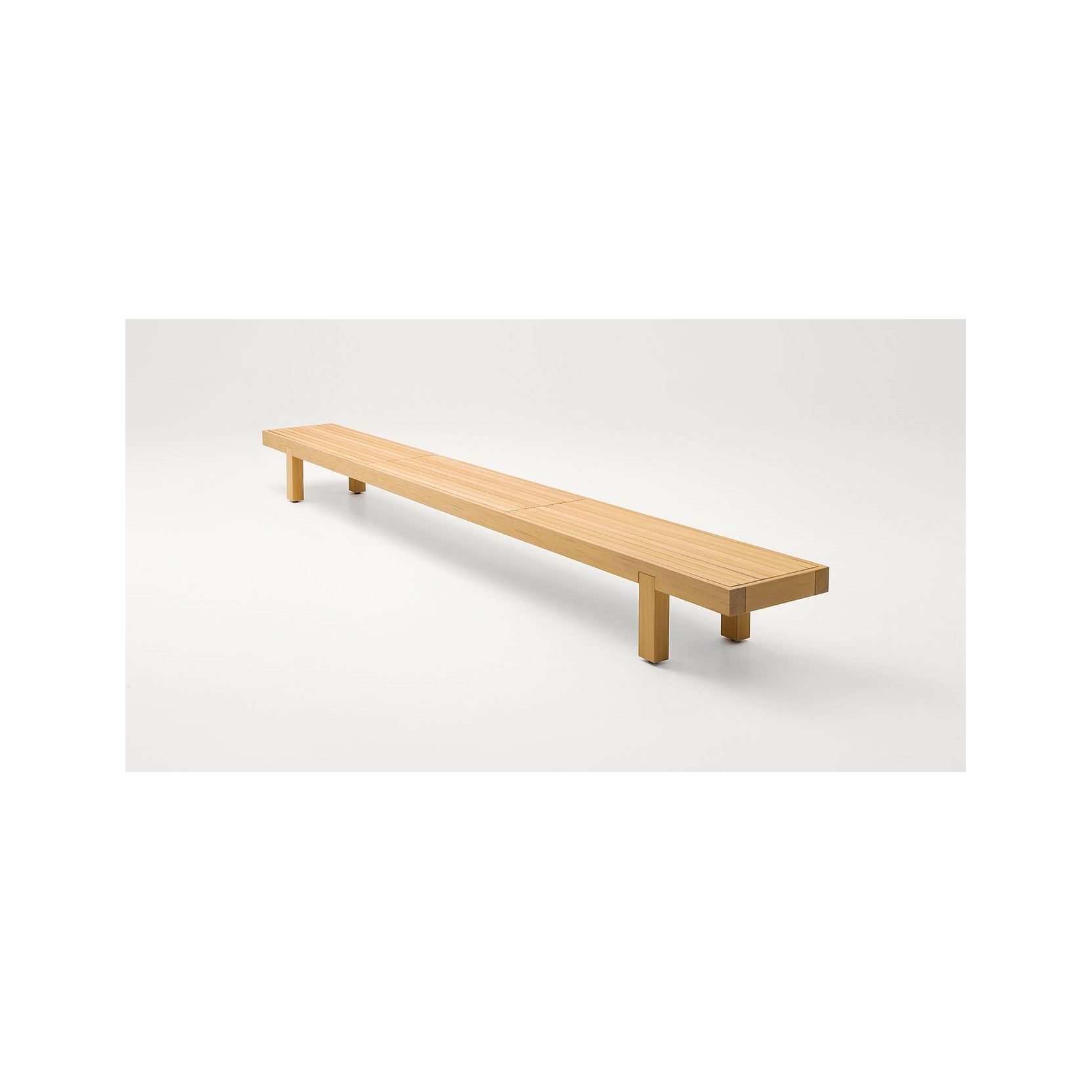 Each bench rests on adjustable plastic feet and is crafted from cedar wood treated with a natural protective finish that enhances its durability and organic look. The upholstered version features a marine plywood seat panel, with a fixed inner layer made of polyester spacer fabric, and an external cover in Wara fabric. For optimal comfort, a cushion is recommended. It’s made of expanded polyurethane, encased in a fixed water-repellent polyester lining, and comes with a removable outer cover available in a wide selection of fabrics, offering different textures, hues, and styles.