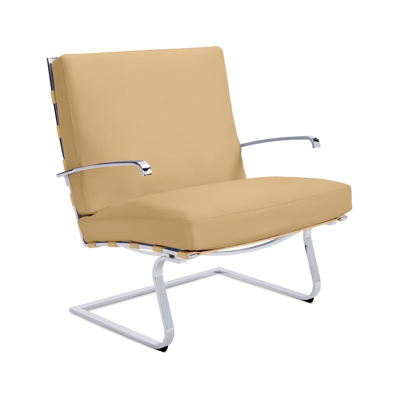 The Tugendhat™ Chair by Ludwig Mies van der Rohe, designed in 1929 for the Tugendhat Villa in Brno, combines elegance and technical precision in a cantilevered form that warmly embraces the sitter.