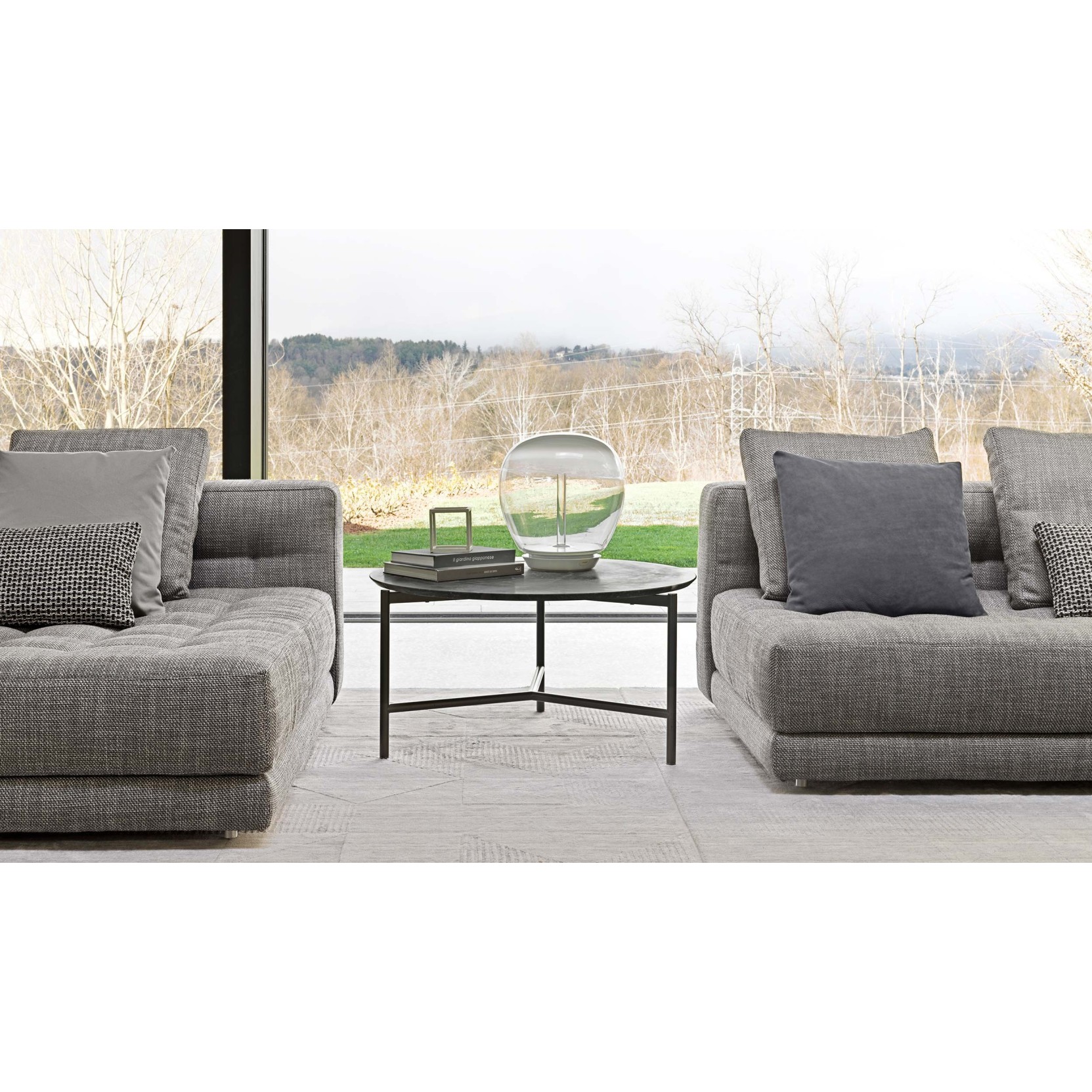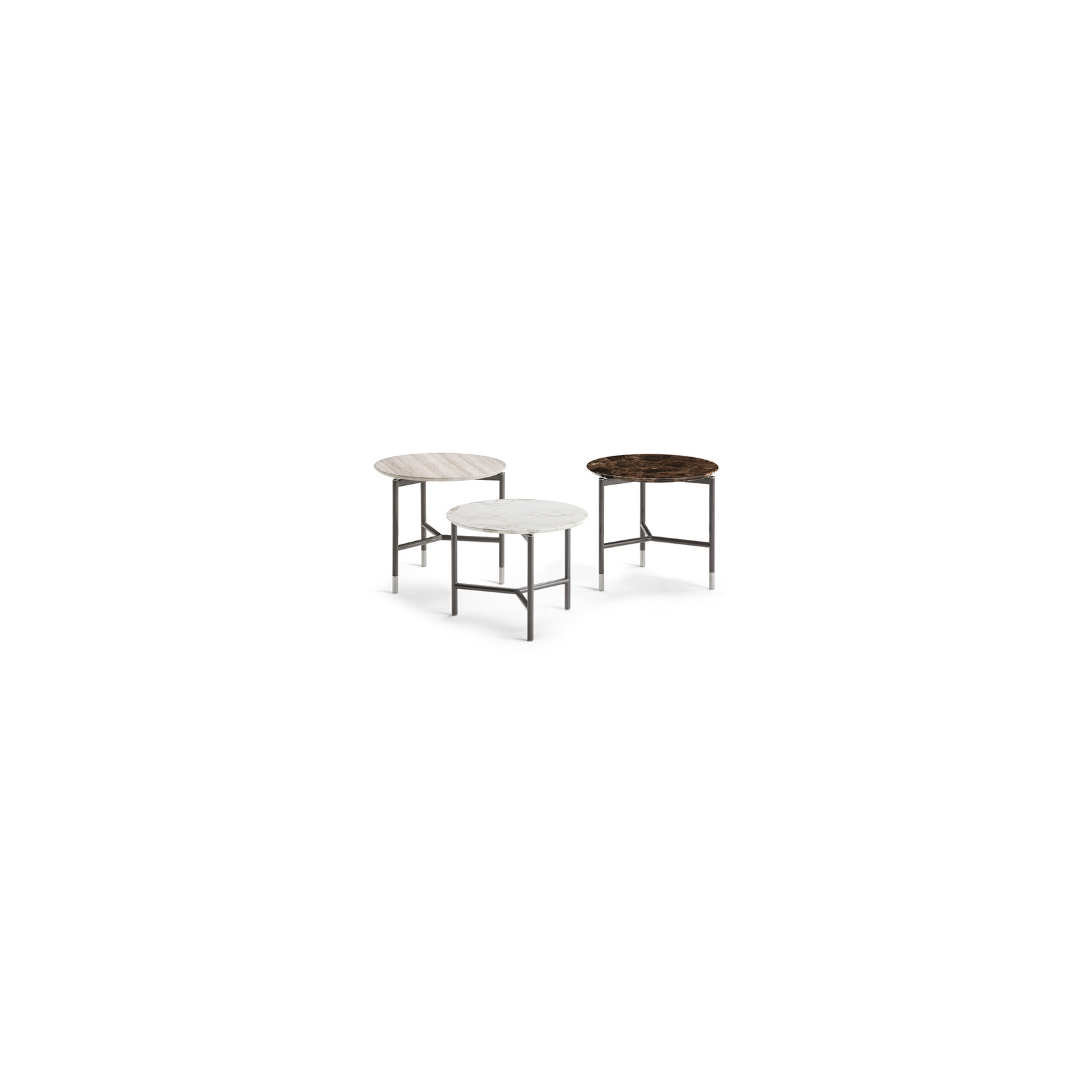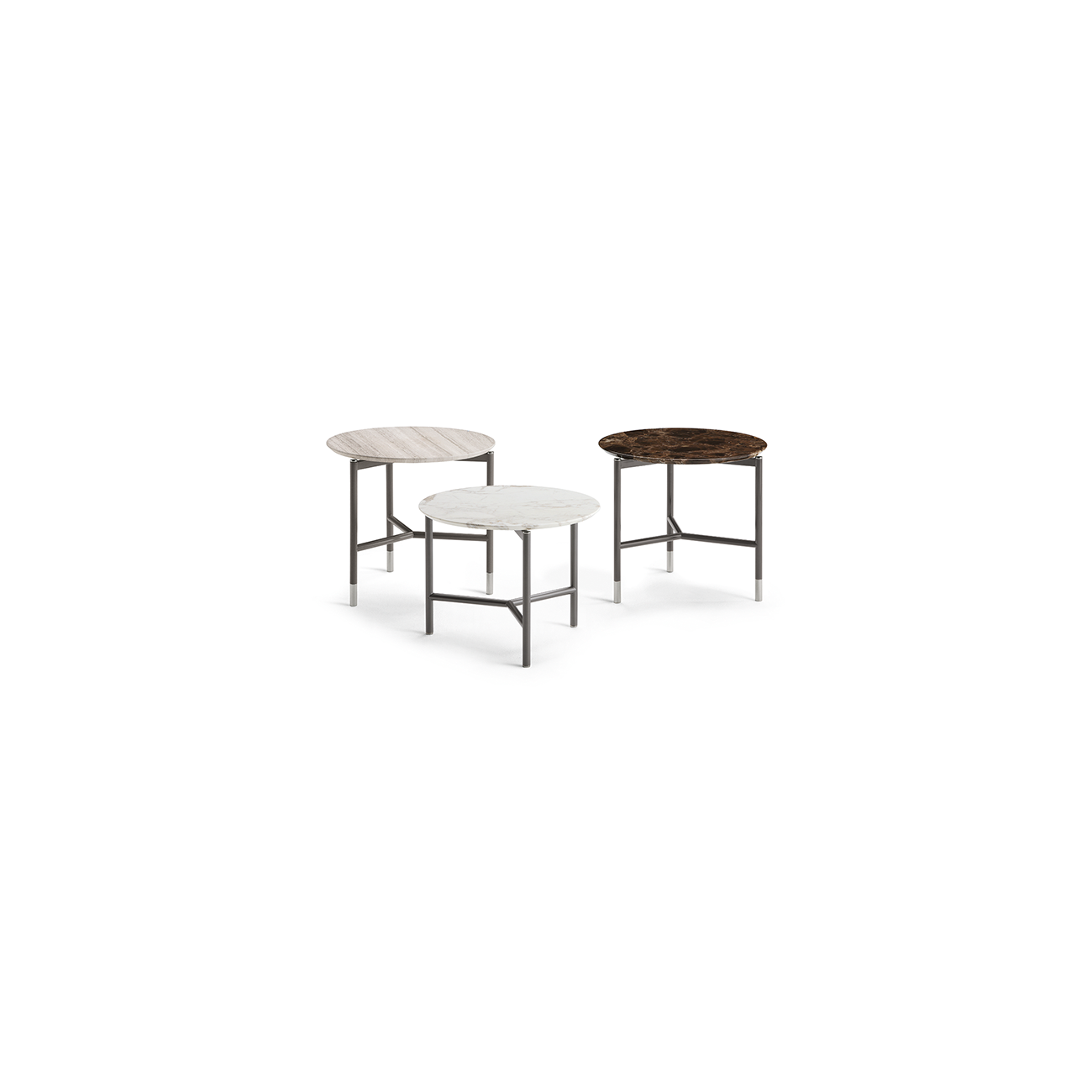 The Iko side tables, designed by Rodolfo Dordoni in 2015, are distinguished by the use of precious materials and refined details, making them suitable for any setting, from the living room to the bedroom. Their varying heights and diameters make them versatile, ideal next to sofas and armchairs or as nightstands.