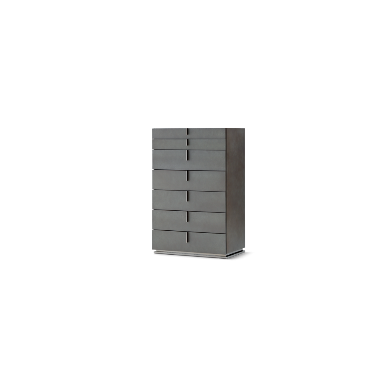 Its wooden structure is enhanced by a matte galuchat-effect lacquer available in two sophisticated shades, Laguna and Deserto, which highlight its texture and craftsmanship. The drawers, equipped with soft-closing mechanisms, ensure practical and safe use, while the black-stained interior adds depth and aesthetic continuity. Handles and base in polished black nickel complete the design with a touch of shine and modernity, making Ari a versatile piece that harmonizes with a variety of interior styles and adds personality and character to the bedroom. The combination of high-quality materials and meticulous details makes this chest of drawers not only functional but also a distinctive design object.