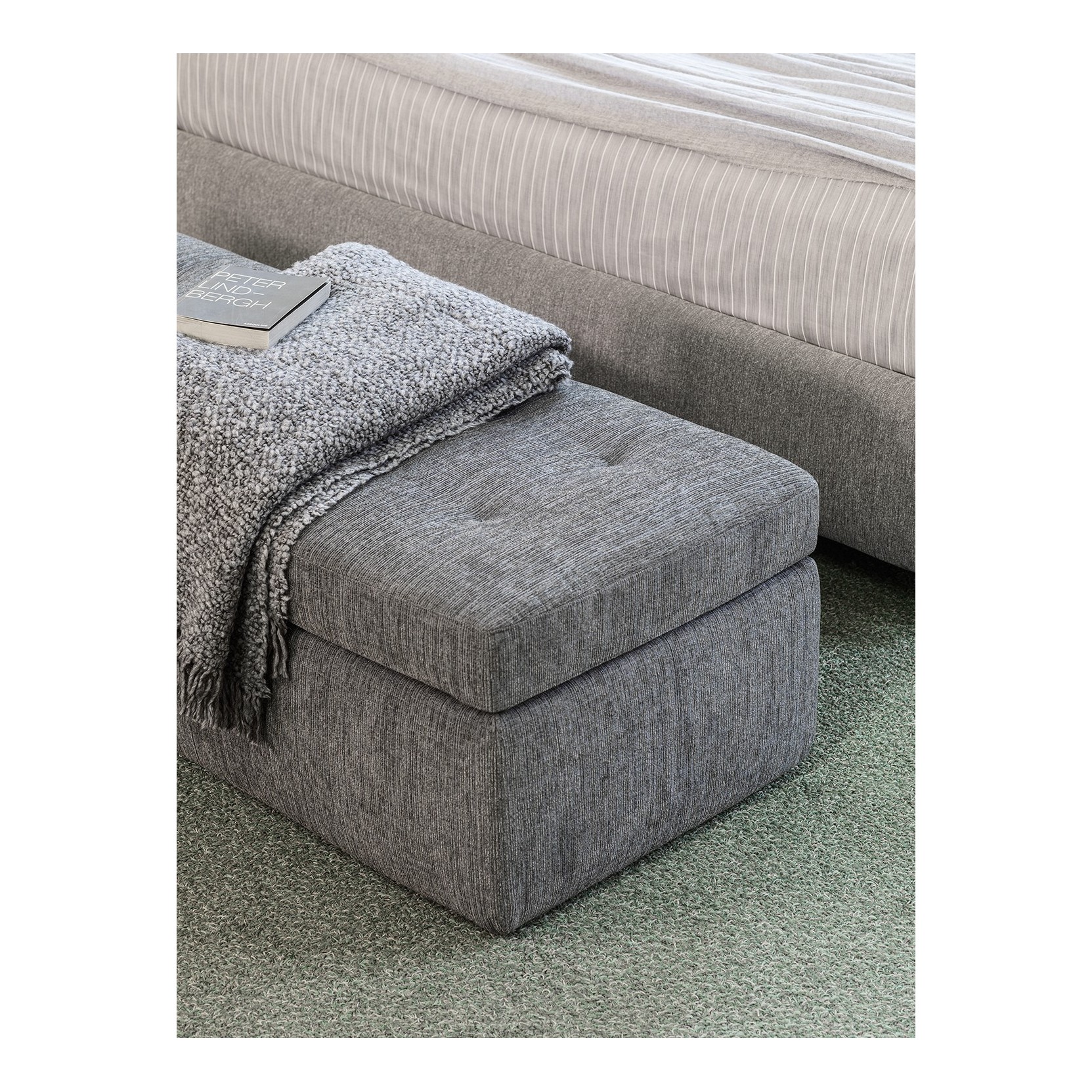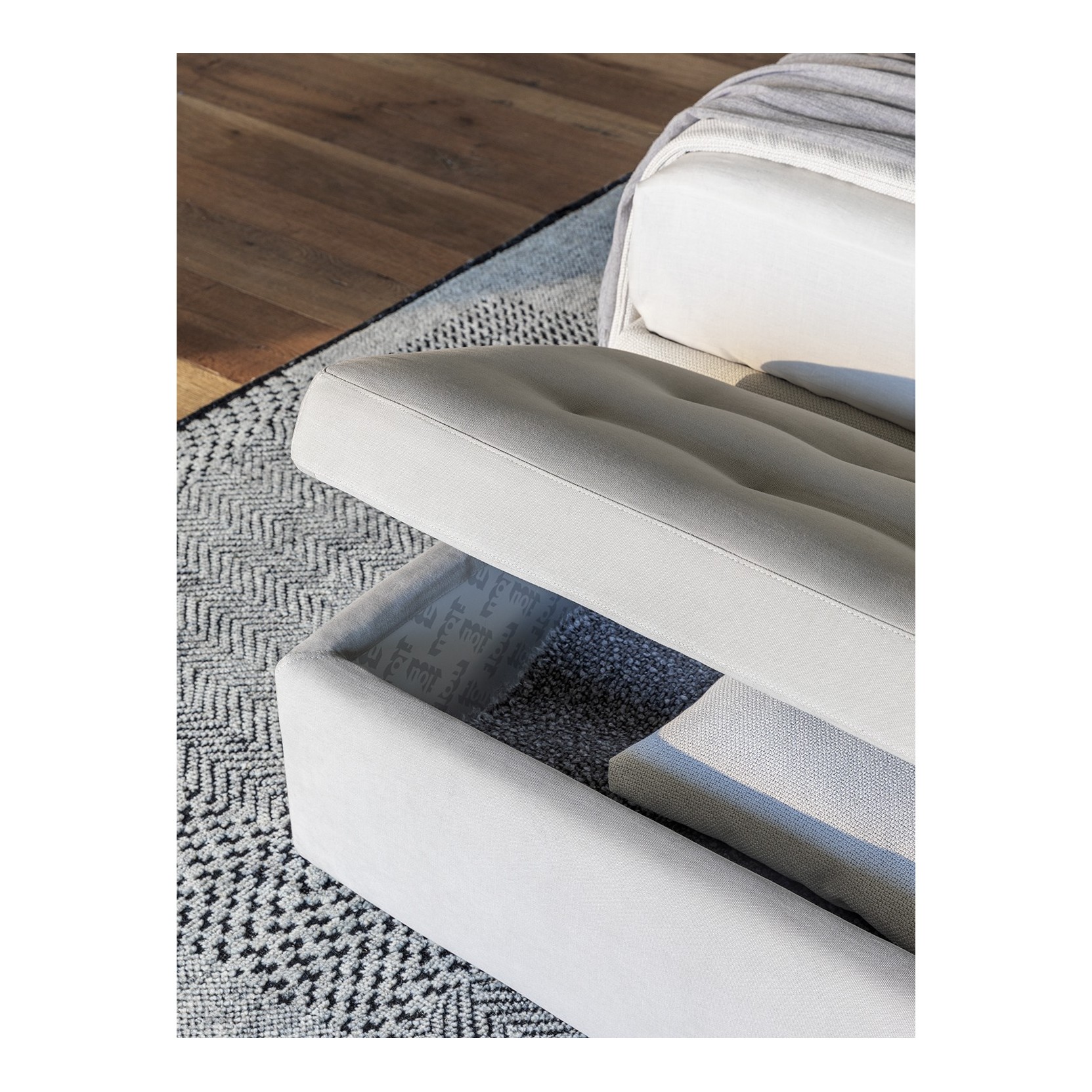 The Iko bench, designed by Rodolfo Dordoni in 2015, is a clever and comfortable furniture piece, ideal for placement at the foot of the bed.