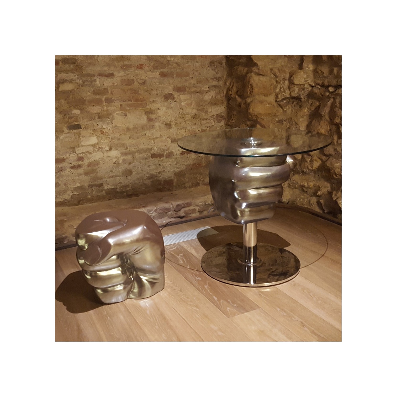 The Fist pouf by Cleto Munari, created in 2014, translates the artist’s iconic fist into a sculptural and durable stool.