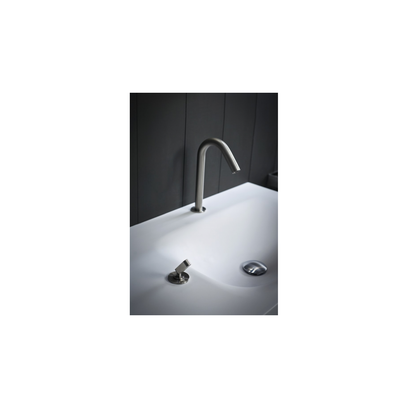Square is a single‑hole top‑mounted basin mixer by Benedini Associati for Agape, in AISI316L stainless steel, with a compact body and short spout. Its minimalist look fits naturally into modern bathrooms and kitchens, pairing elegantly with stone, wood or composite countertops.
