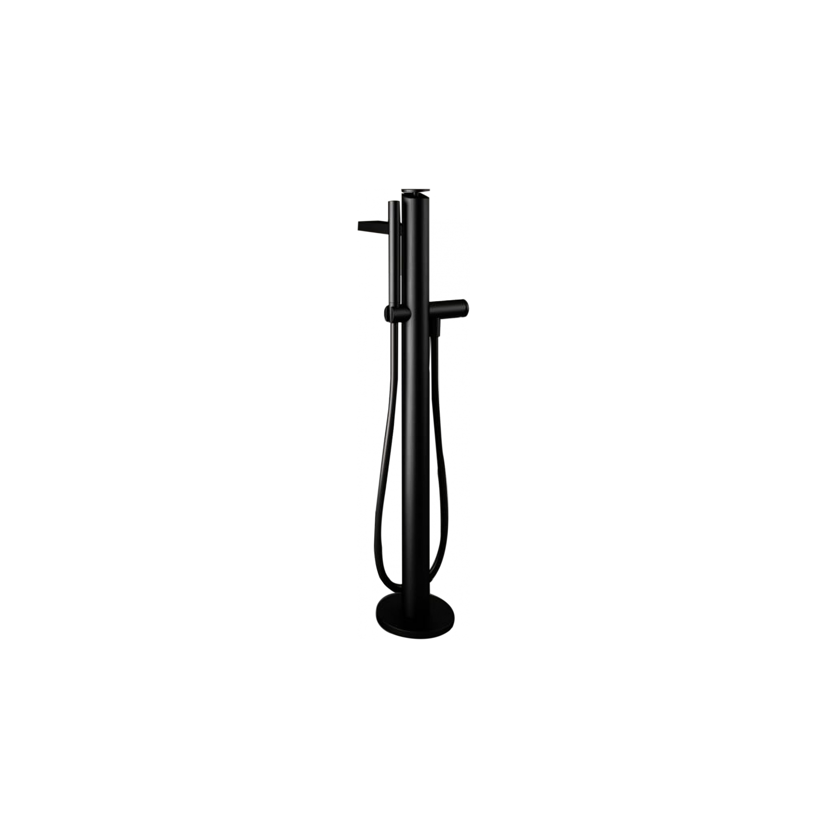 Sen is a floor‑standing single‑lever bath mixer by Gwenael Nicolas (Curiosity) for Agape, in brushed black anodized aluminium, with a tall vertical body and a built‑in handheld shower. Its clean, architectural form makes it a strong focal point in minimalist tub areas, easy to combine with stone or wooden surrounds.