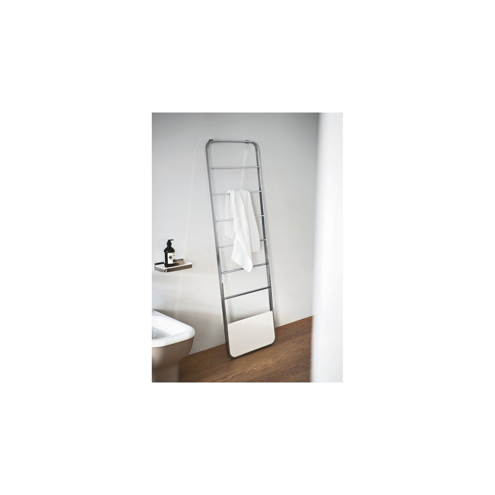 The Memory towel radiator is made of steel, offered in glossy chrome (with a white front panel) or coated white or black, and features a self‑regulating thermostat that keeps the surface at a comfortable temperature without overheating. It plugs into a standard 230 V outlet, with a cable about 140 cm long (plug not included) and a mounting kit for wall installation, intended for neat, flush‑looking setup on tiled or stone walls. Typical dimensions are about 160 cm high, 50 cm wide and 9 cm deep, with a smooth, easy‑to‑wipe surface that works both as a towel warmer and as a subtle decorative panel. As part of the Memory family, it coordinates with Memory taps, basins, bathtubs, mirrors and accessories, supporting a consistent, refined bathroom layout where functional warmth and material beauty share the same minimalist language.