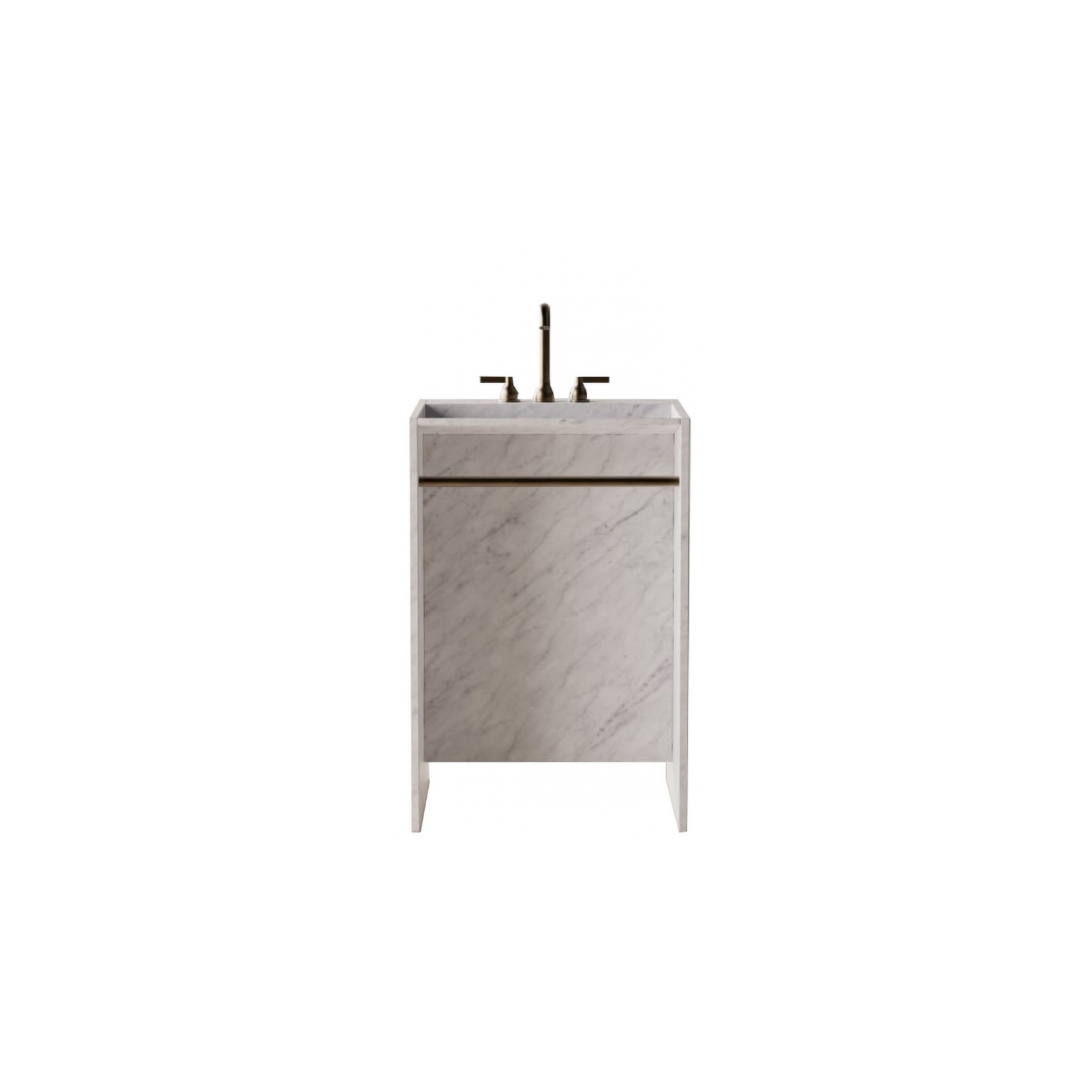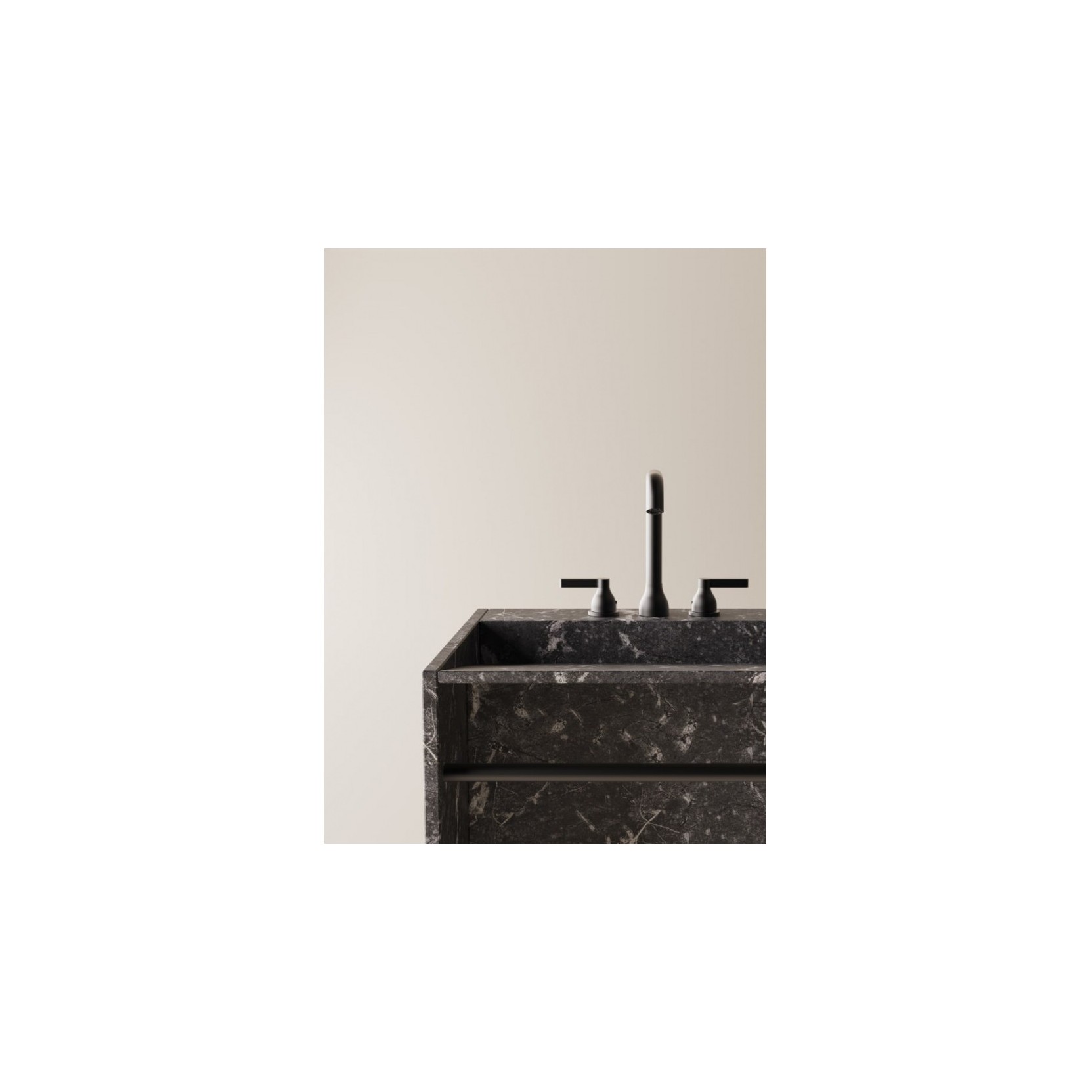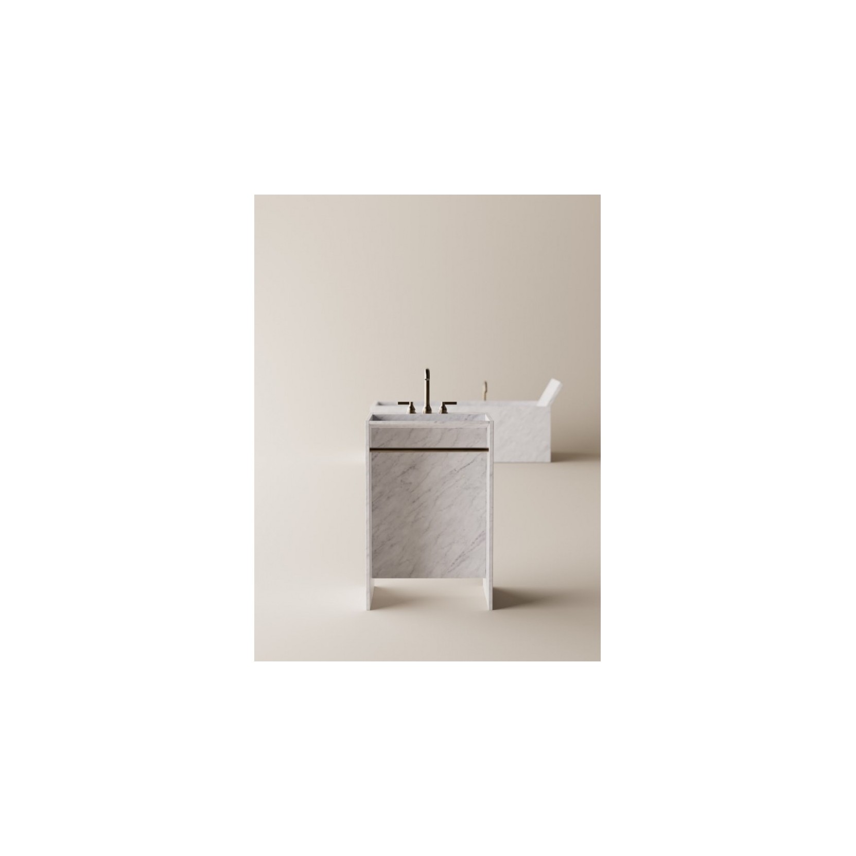 Face à face column is a freestanding basin by Jean Nouvel for Agape, made of marble slabs arranged in a clean, architectural composition that feels like a small piece of building inserted into the bathroom. It comes in Carrara white, grigio Carnico or nero Marquina, with a sloping basin, no tap holes, free drain, and optional shelf or towel‑holder that match the same visual language.