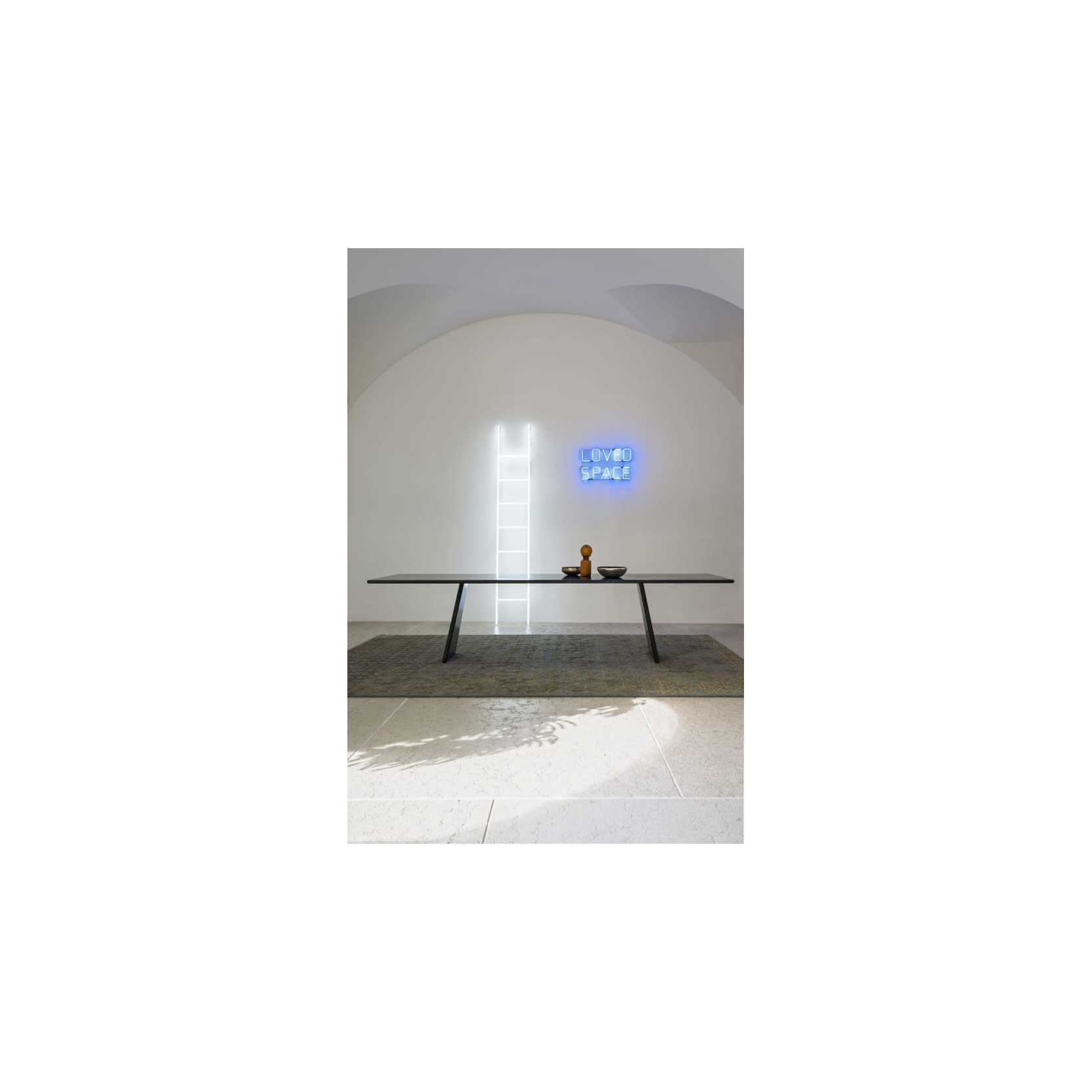 Asolo is an exercise in extreme minimalism, where design reaches its essence through a deep knowledge of the mechanical properties of materials. In this project, the contact area between the tabletop and the legs is reduced to the bare minimum, and every component not structurally necessary has been eliminated, making the structure almost two-dimensional while maintaining exceptional stability. The trapezoidal and inclined shape of the supports is the key element that, combined with the weight of the stone material, transforms gravity into a constructive element that locks and consolidates the entire system. The beauty of Asolo lies precisely in this apparent fragility, which conceals superior engineering solidity. Available in various sizes and finishes (Bianco Carrara, Nero Marquinia, Grigio Carnico, Verde Alpi, and Emperador Dark marbles), Asolo confirms itself as a functional work of art and a cornerstone piece of the Mangiarotti Collection, ideal for those seeking a design that anticipates trends and celebrates constructive purity.