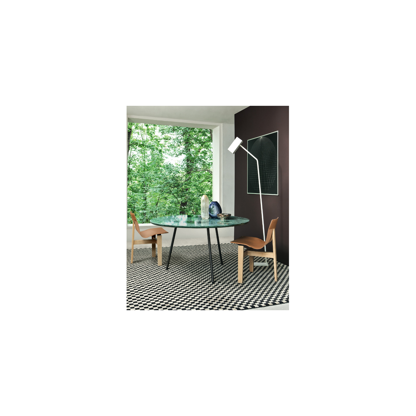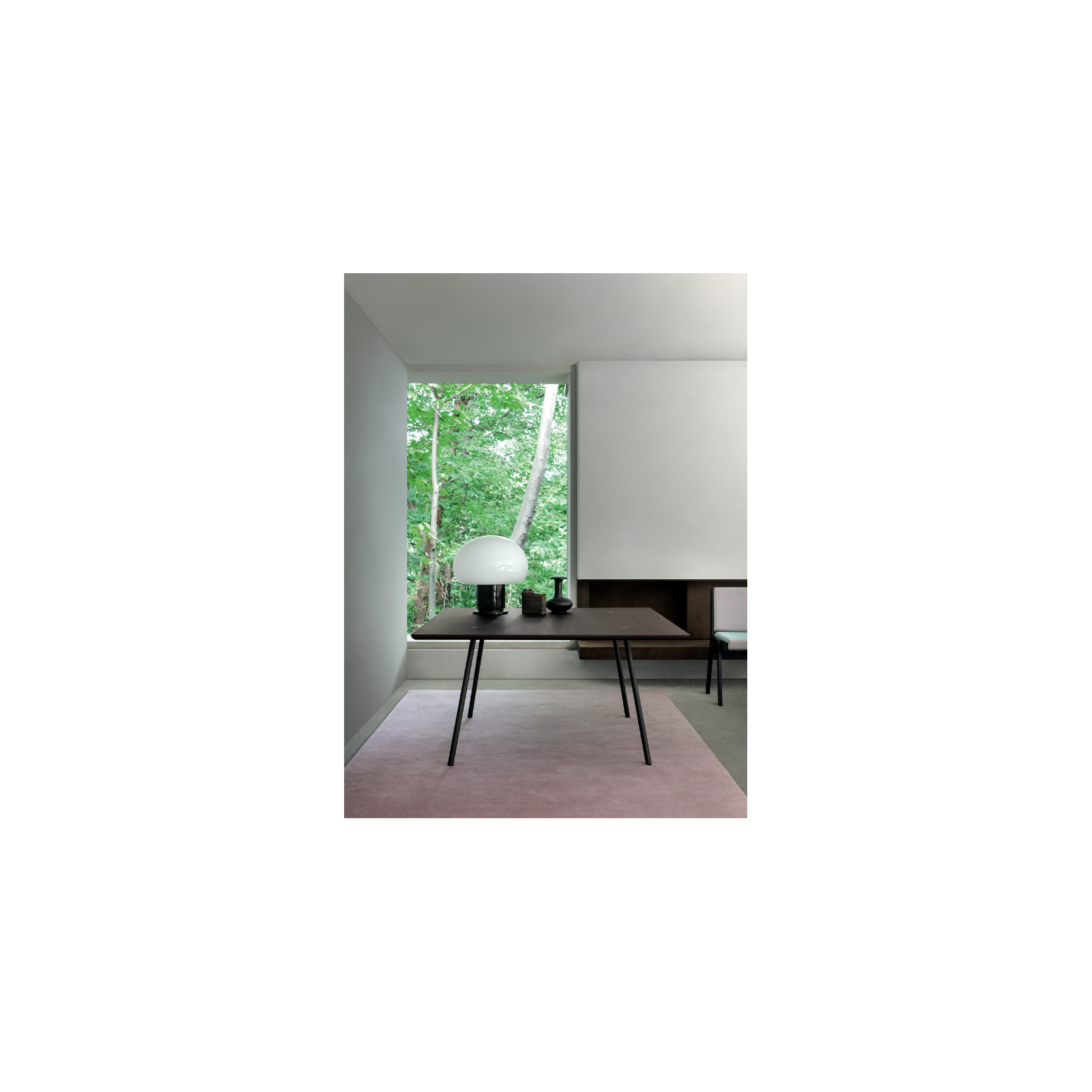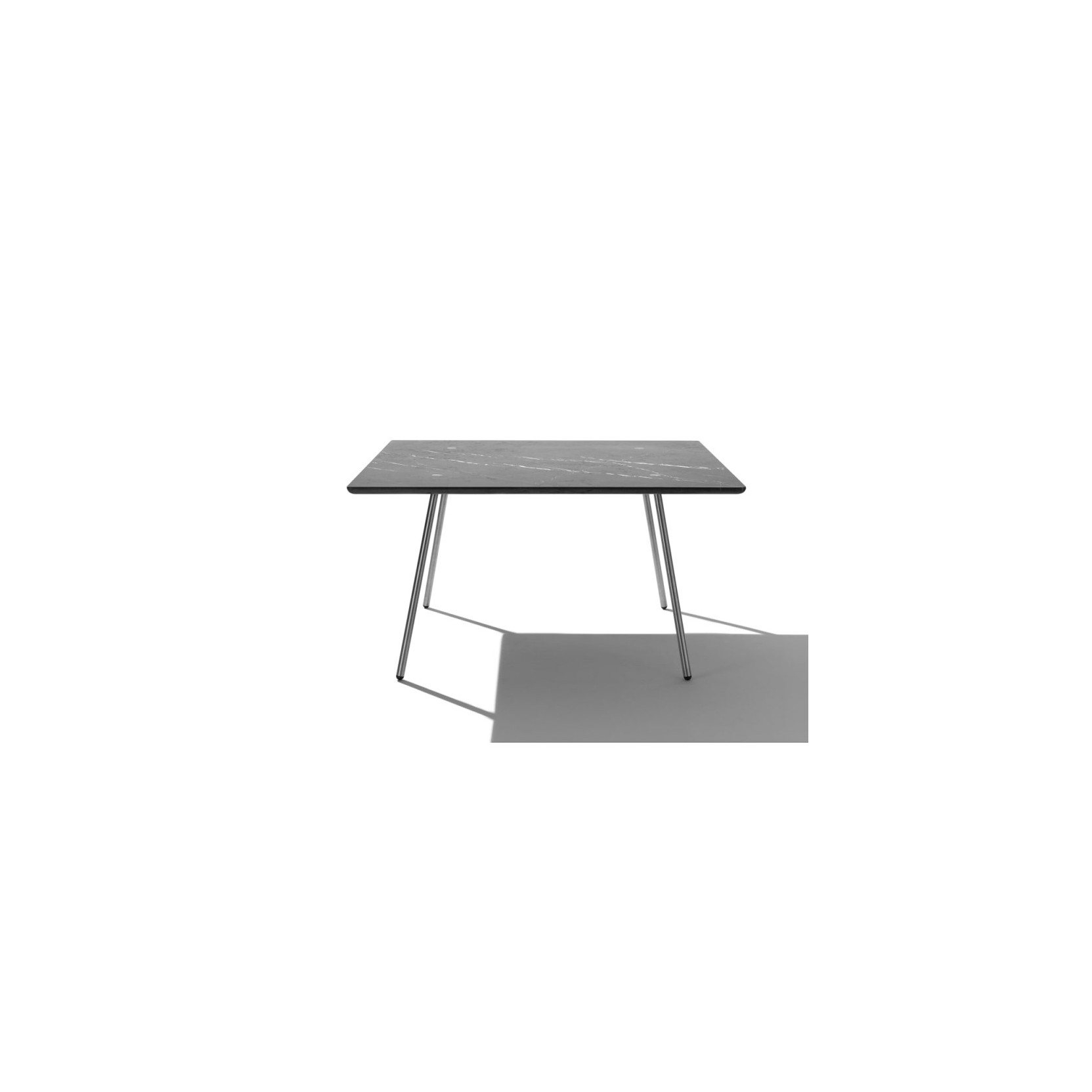 More is the most "extreme" and refined iteration of Mangiarotti's modern design, where the form arises directly from structural optimization. The use of steel for the supports — which feature a doubly inclined profile — allows for a higher degree of visual lightness compared to previous stone models, while still guaranteeing impeccable mechanical stability. The junction between the leg and the tabletop is a detail of engineering precision: the elliptical upper surface of the hole in the top not only receives the leg but actively contributes to locking it in place, preventing any rotation. Available in various shapes (round, square, rectangular) and with tabletops in fine marble or wood plywood, More is not just a table, but a manifesto of constructive coherence that combines history, engineering, and a modern elegance, confirming itself as an essential piece of Agapecasa's Mangiarotti Collection.