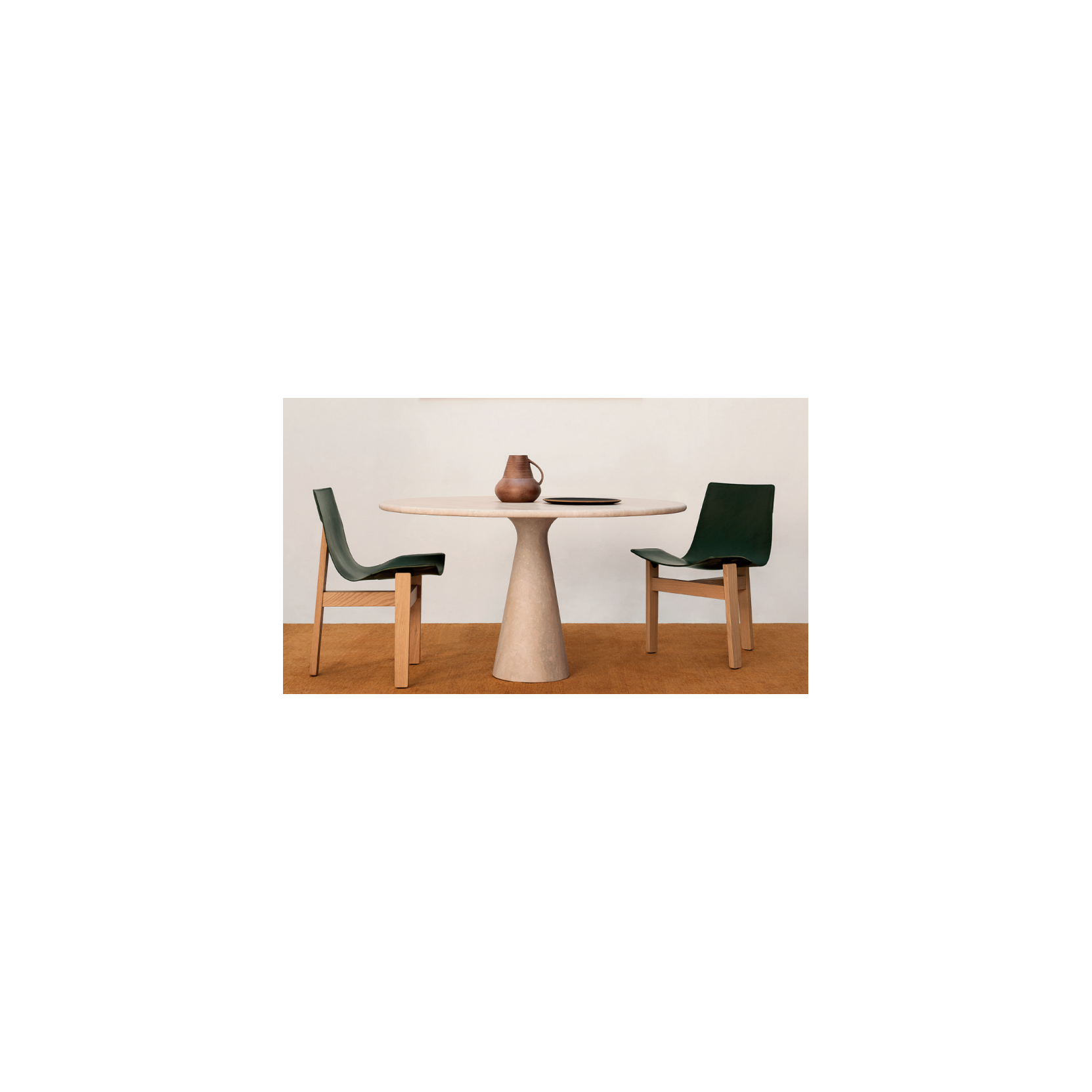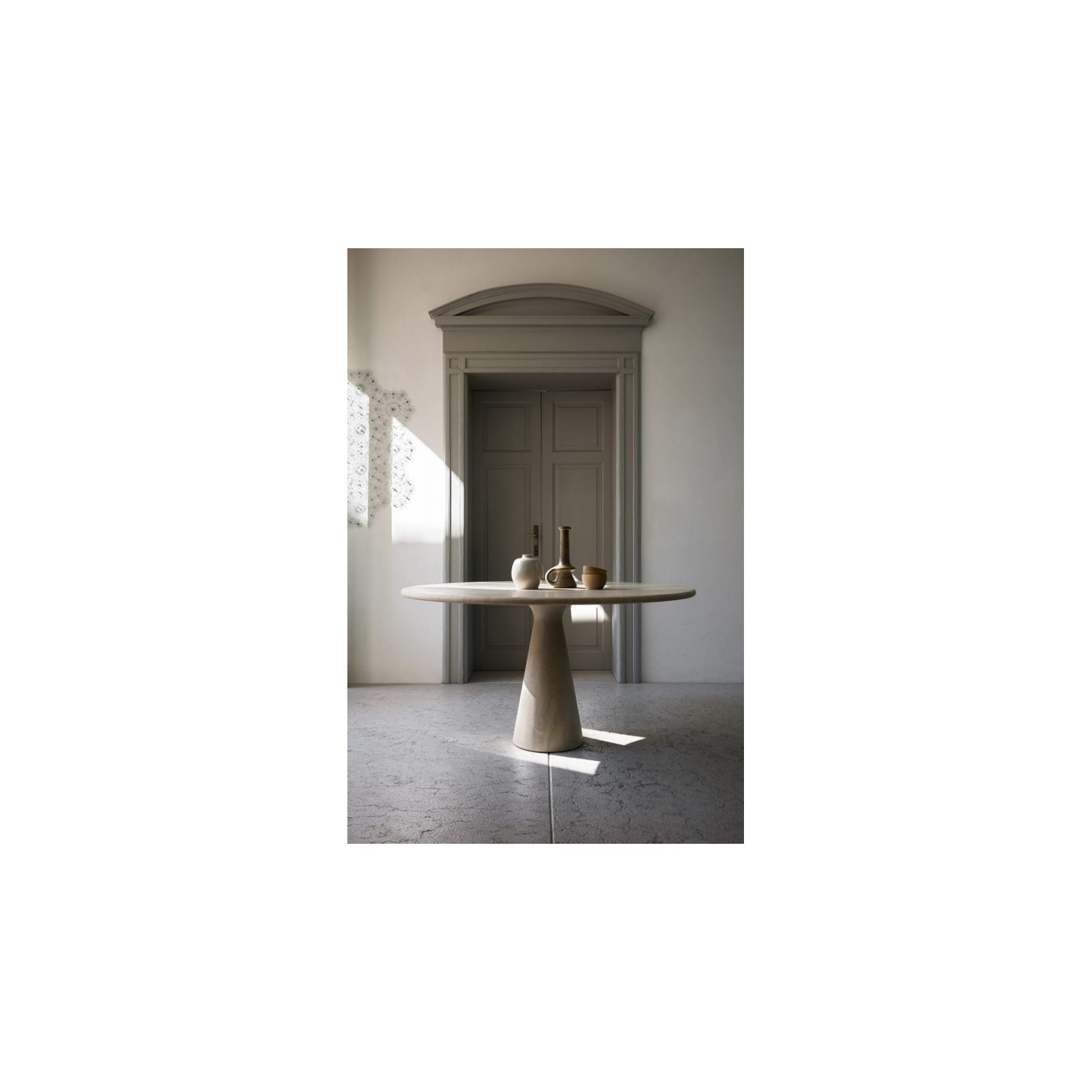 M represents a masterful synthesis of form, stability, and elegance. The sculptural silhouette of the base, which opens gently to receive the tabletop, gives the table an important yet fluid and dynamic presence. Mangiarotti, with his unique sensitivity, chose to enhance the natural characteristics of the stone through a particular finish that caresses its curves, transforming a traditionally rigid and heavy material into a harmonious and welcoming object. Beyond its aesthetic value, the M table is historically significant: it serves as the conceptual "point zero" for the geometric and structural evolution that will lead to the birth of masterpieces such as Eros, Incas, Asolo, and More. Available in fine marbles (Bianco Carrara, Nero Marquinia, Grigio Carnico, Verde Alpi, Emperador Dark), the M table is a functional sculpture that enriches daily living with the timeless strength of Angelo Mangiarotti's design.