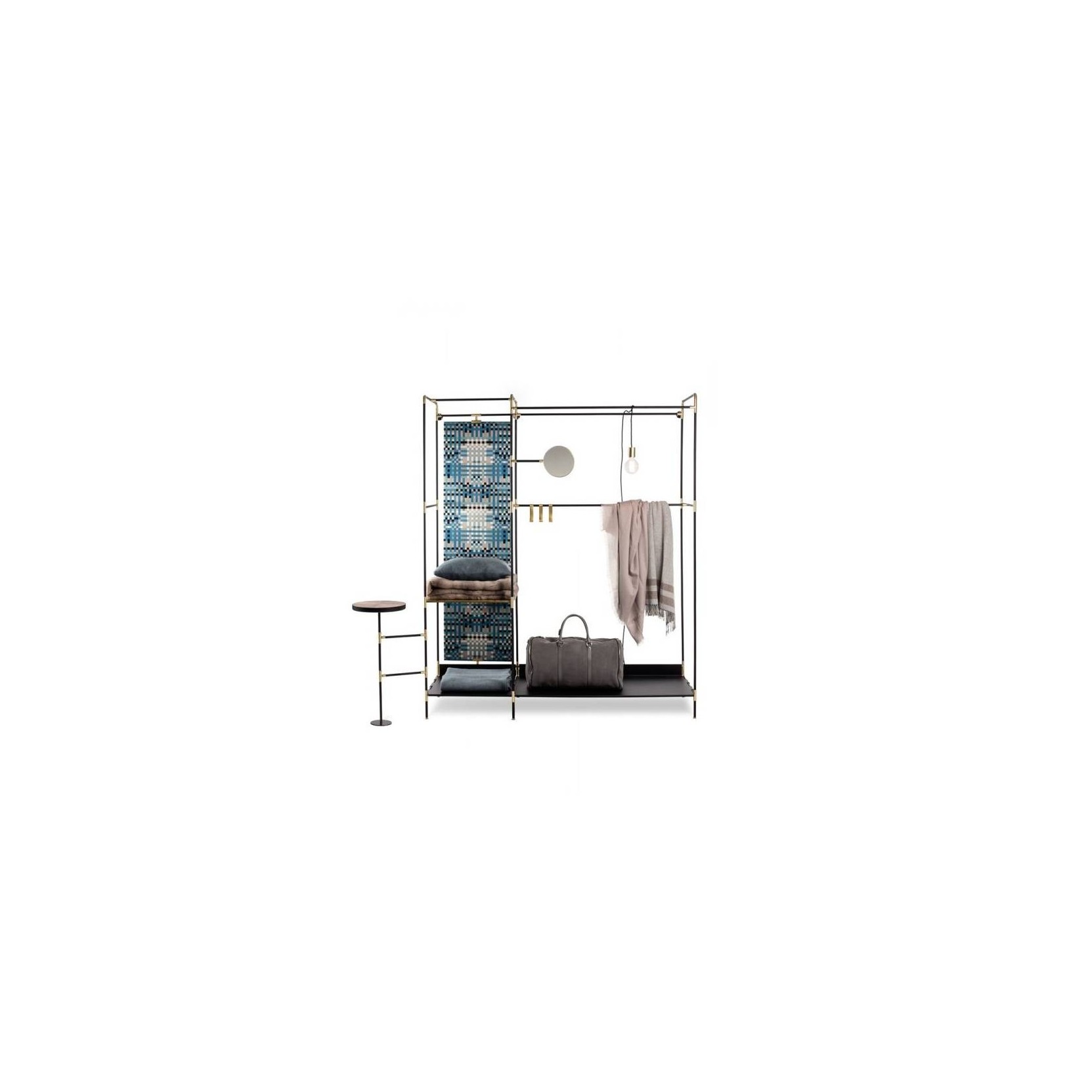The unexpected subtlety of simplicity: an essential, retro-flavored frame that calls to mind all the glamour of a theatre dressing room, or of an elegant fashion atelier, able to dress up any room with sheer class. Thanks to its extreme versatility, it can change from closet into writing desk and vanity, from bathroom accessory to entrance piece of furniture according to your needs.