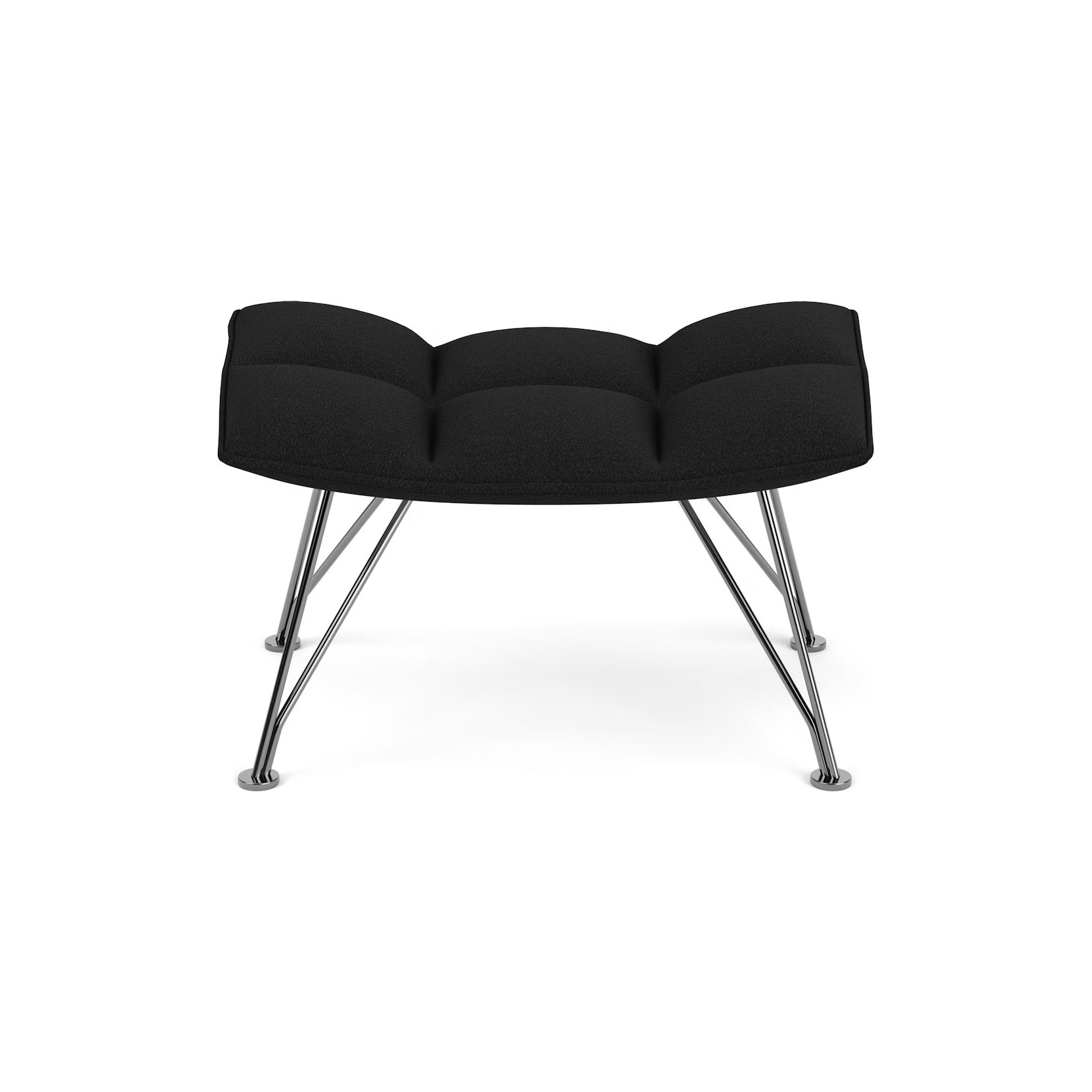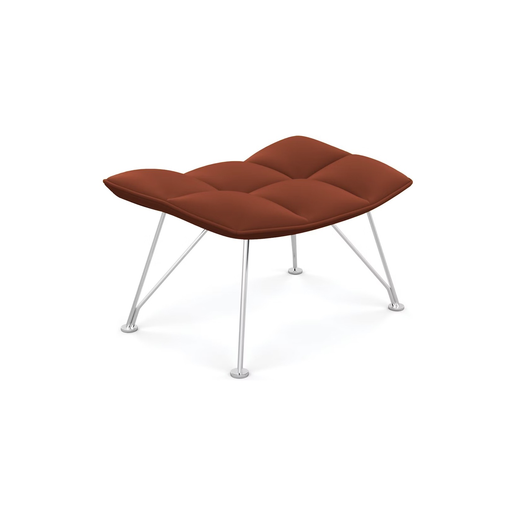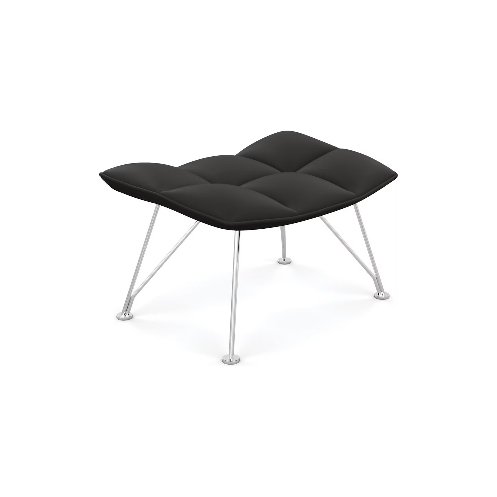 The Jehs + Laub Ottoman harmoniously complements the sweeping form of the Lounge Chair, echoing its steel wire base and quilting-inspired geometric upholstery.
