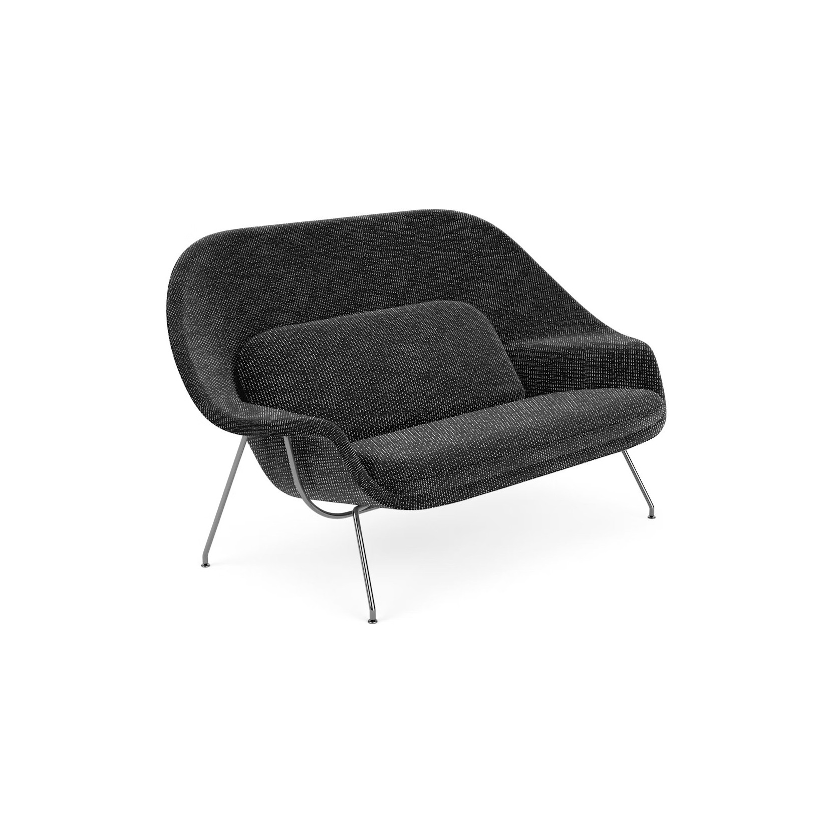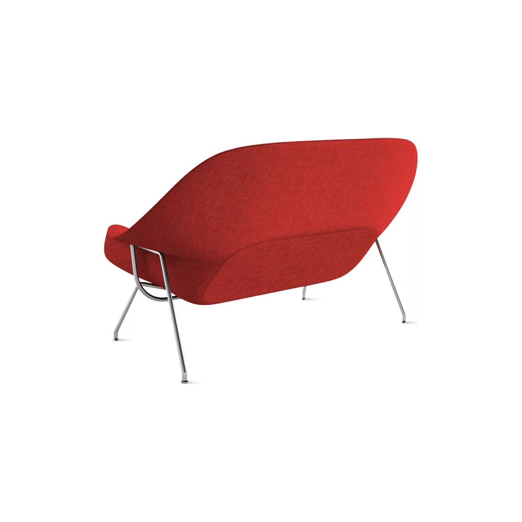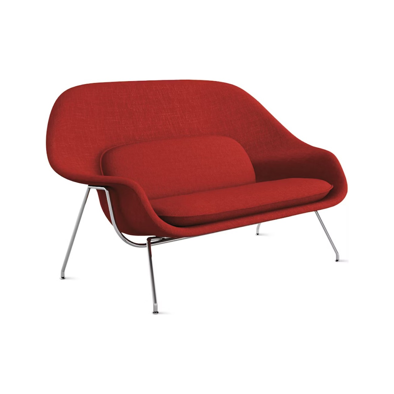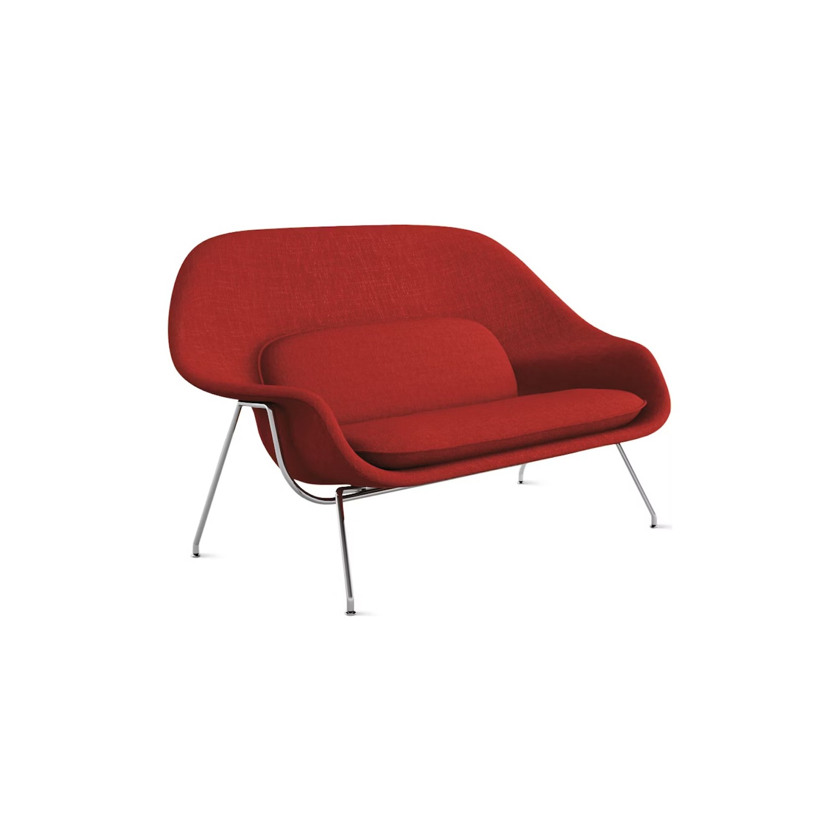 The Womb Settee, designed by Eero Saarinen in 1948 and reintroduced in 2015, is a double-wide chair that provides a soothing oasis of comfort for home or office. Developed for the General Motors Technical Center in Michigan, Saarinen created a slim, sculptural, and inviting settee, unlike the bulky models popular at the time, designed to naturally accommodate the user without compromising style.