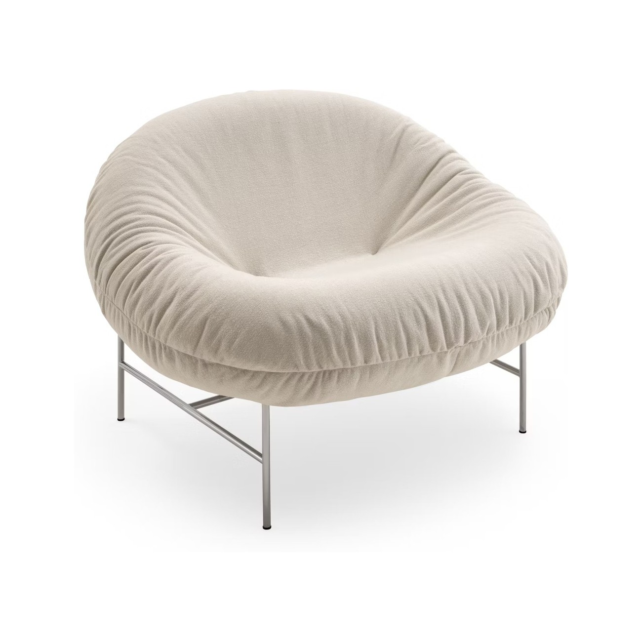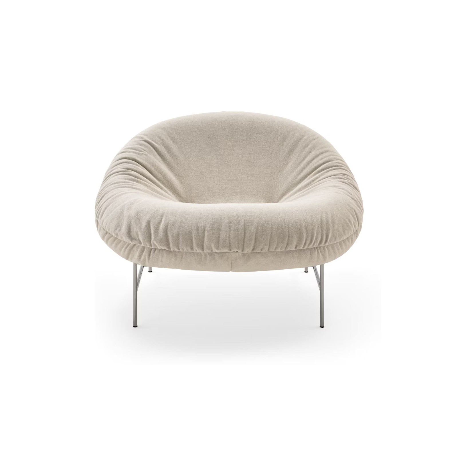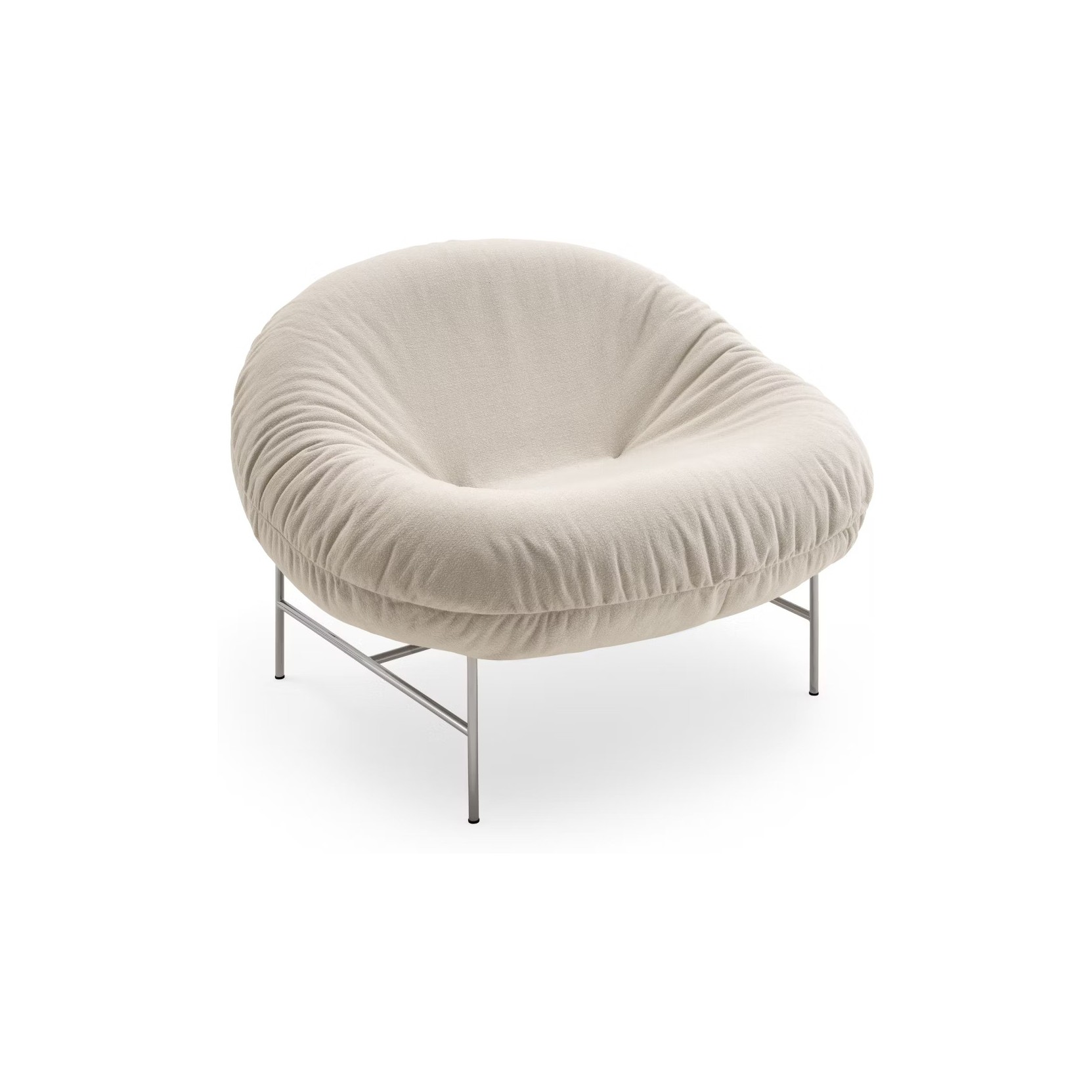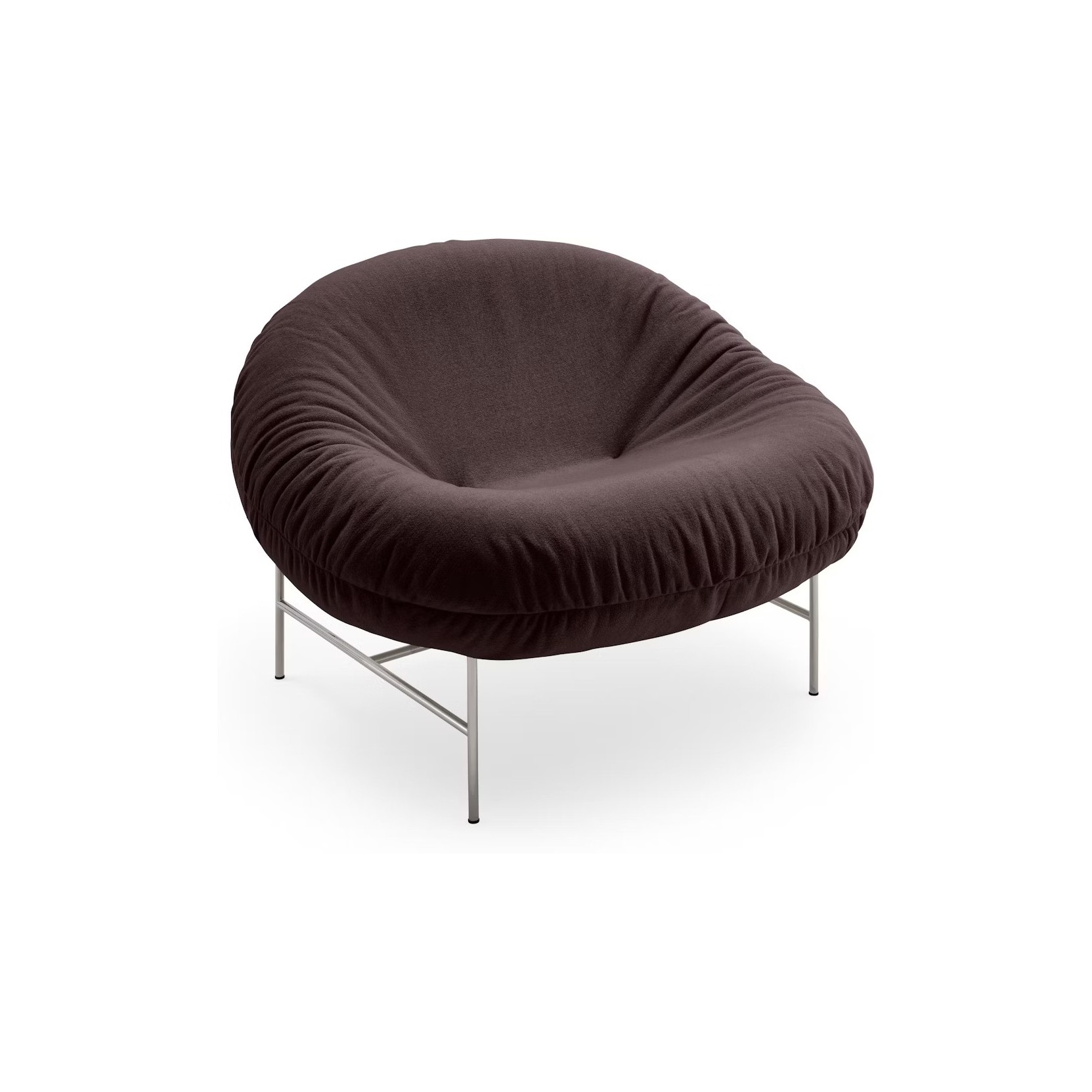 The Perron Bun Lounge Chair by Willo Perron combines the comfort of a plush, enveloping cushion with a sculptural frame, offering an informal and dynamic solution for relaxation.