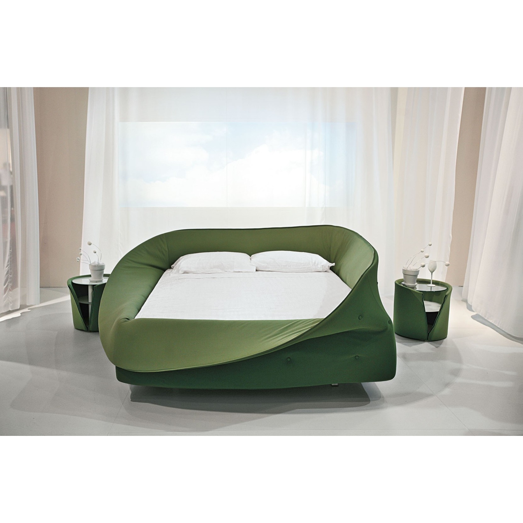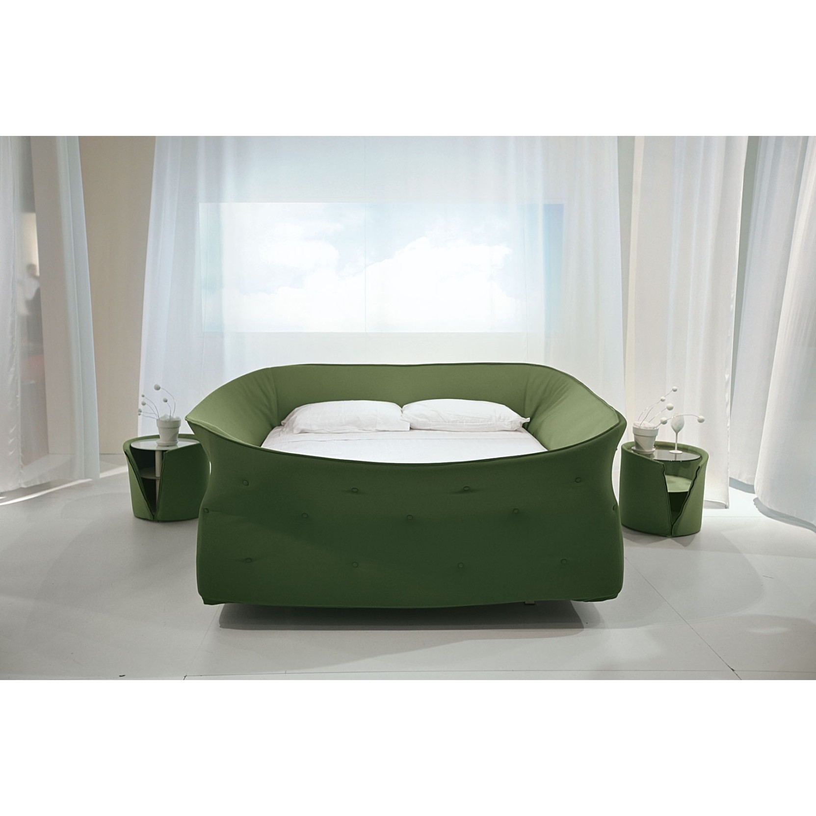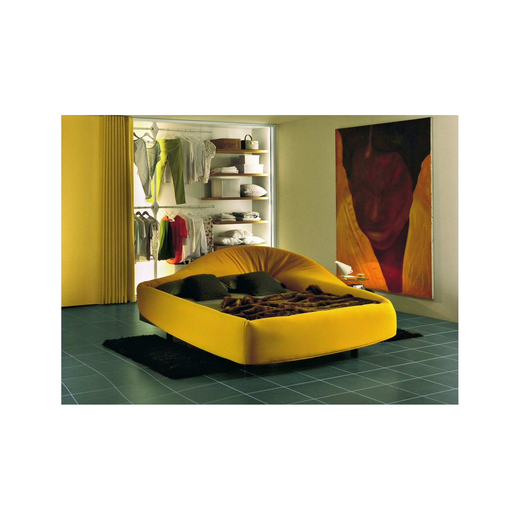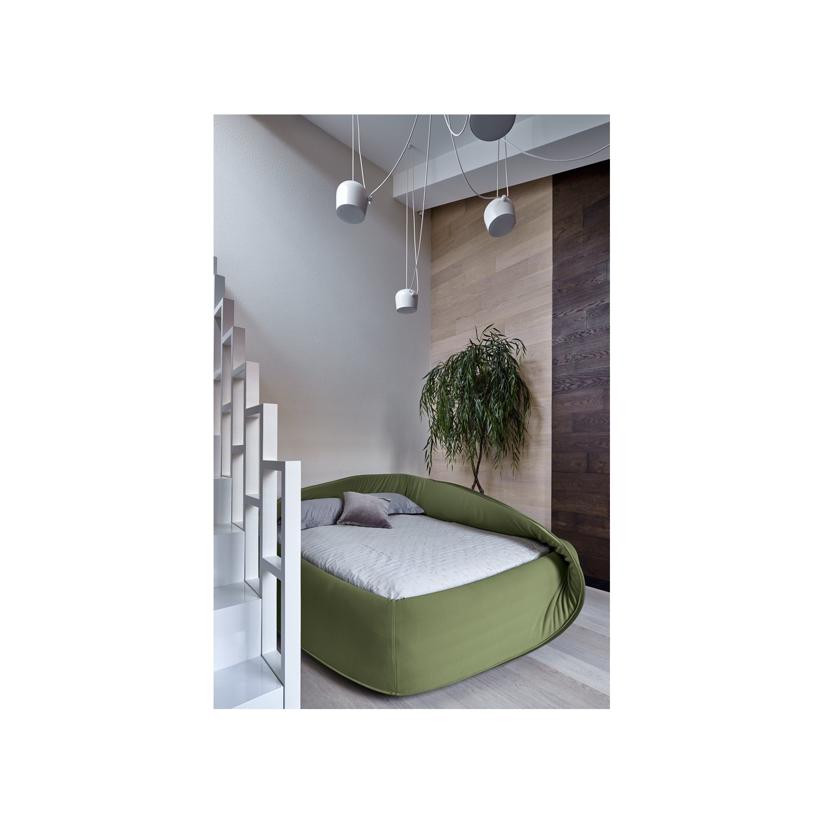 With the Colletto bed, you sleep enclosed within a soft visual and sound barrier. A soft-foam ring around the mattress creates a relaxing atmosphere where you can escape from the everyday routine. The ring is attached to the bedframe with velcro and its cover can be removed. There are three bed sizes to choose from: single, double and three-quarter. The bed’s “collar” can be rolled up or down like a turtleneck, creating three different options: open, semi-closed or completely closed, for a more intimate space. The Colletto bed can be paired with Colletto bedside tables to create an even more harmonious and original look.