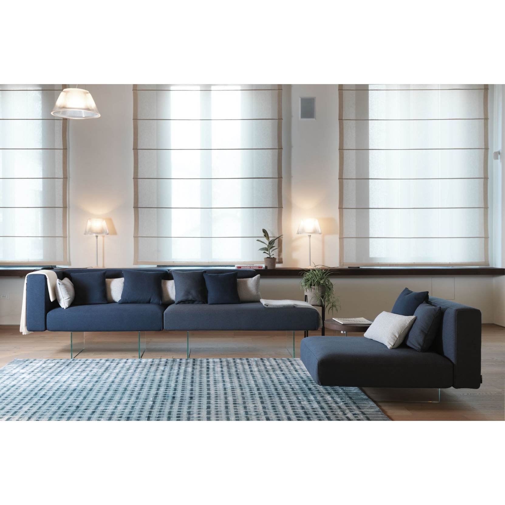 aluminium structure, feet in clear glass tempered th. 1,2 cm. seat in MDF
