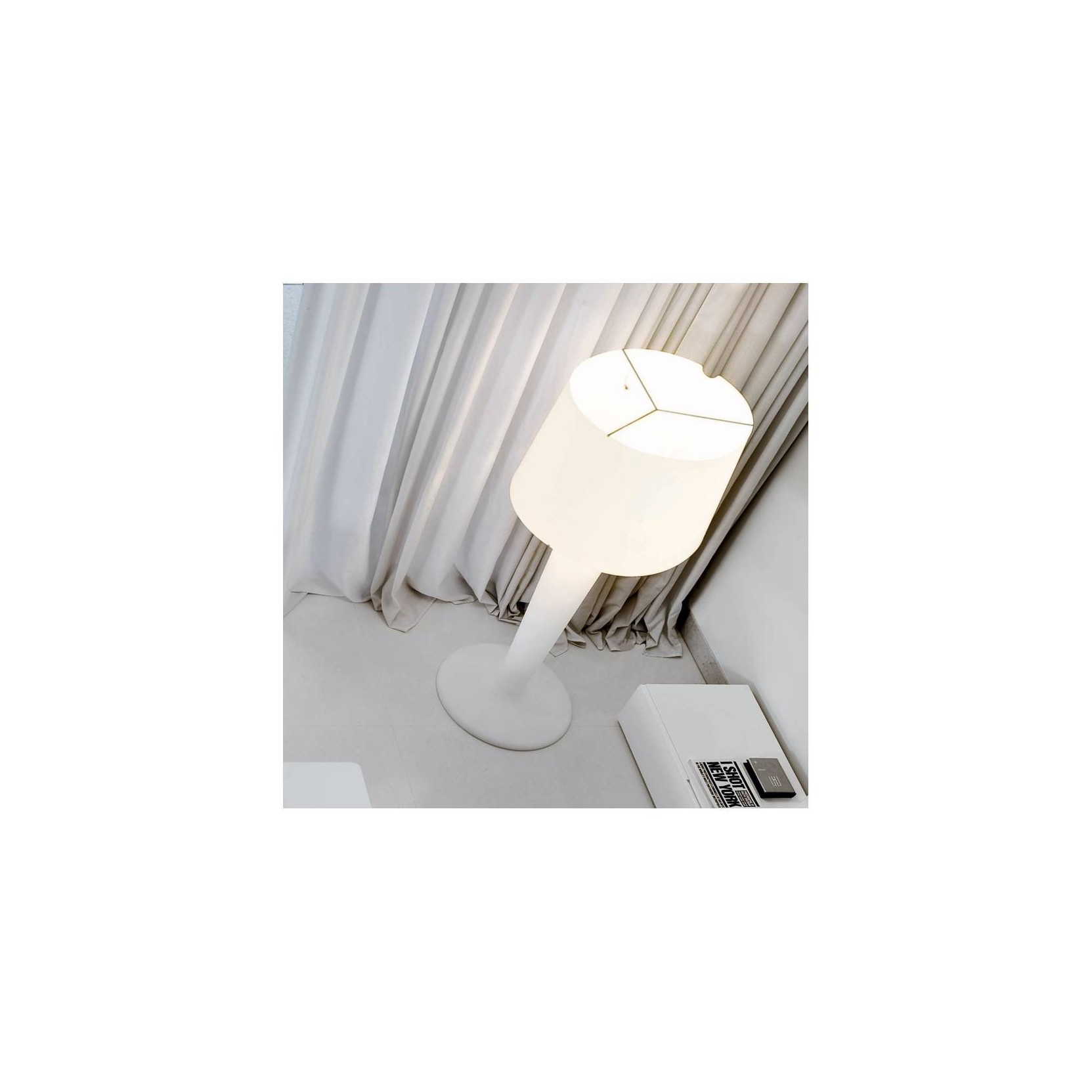 An object that comes into our house and soon became emblematic for its dramatic force. XXLight is a lamp consisting of a polyethylene frame and a white lampshade in white polycarbonate. Thanks to the light source placed inside, XXLight illuminates the surrounding environment and gently diffuses the light upwards.